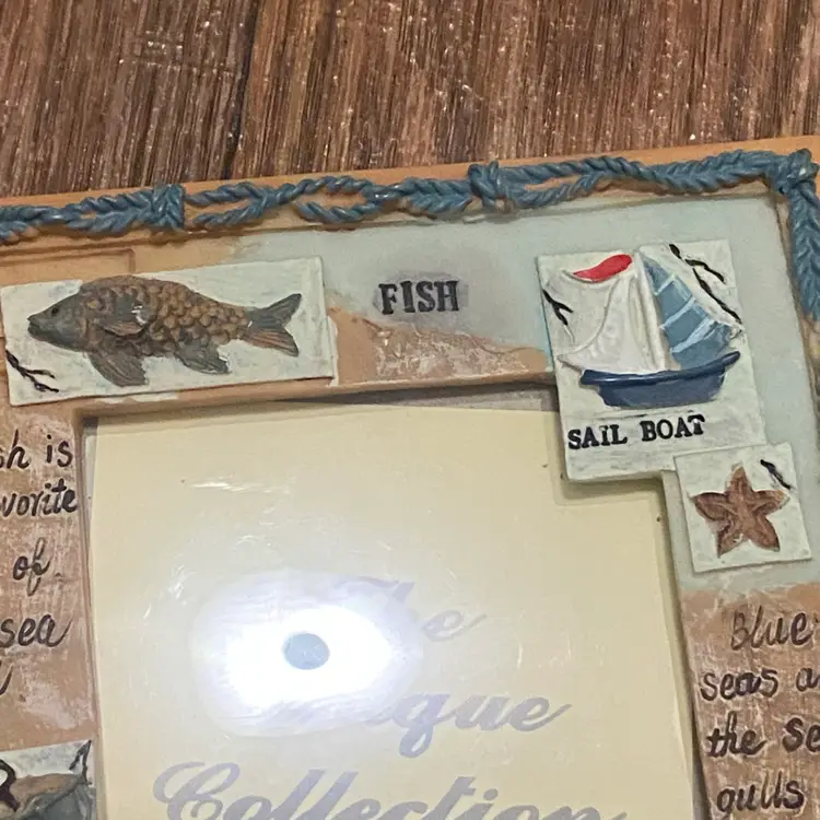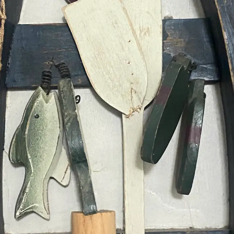 Lot Of 2 Nautical Fishing Canoe Wall Decor & Photo Frame Lake House Beach READ Fishing Canoe Shadow Box - the anchor at the top is missing. You can see glue where it was. One of the oars has the handle broken off There is wear to the sides. All shown in photos 16” Tall / 8” wide / 2” deep Photo frame has minor wear to the back but no damage on front Photo size 3.5Wx5”H Frame size 6”Wx7”H #fishing #coastal #lakehouse #beach #weathered