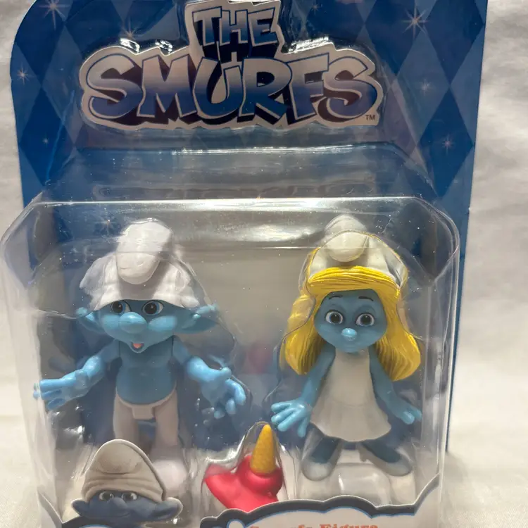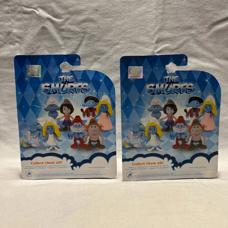 This product is a lot of 2 packs of figures from the movie "The Smurfs." The figures included are Clumsy & Smurfette, and Papa Smurf & Hackus. These plastic toys stand at 2.5 inches tall and are part of the JAKKS Pacific brand. They are from the animated adventures series and are based on the popular TV show "The Smurfs." This mix of characters is suitable for boys and girls aged 4 and above, making it a fun addition to any Smurfs fan's collection.