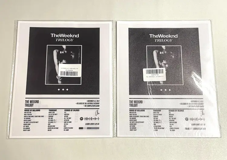 The Weekend album covers on canvas. Lot has 2 packs each with 6 different prints.
