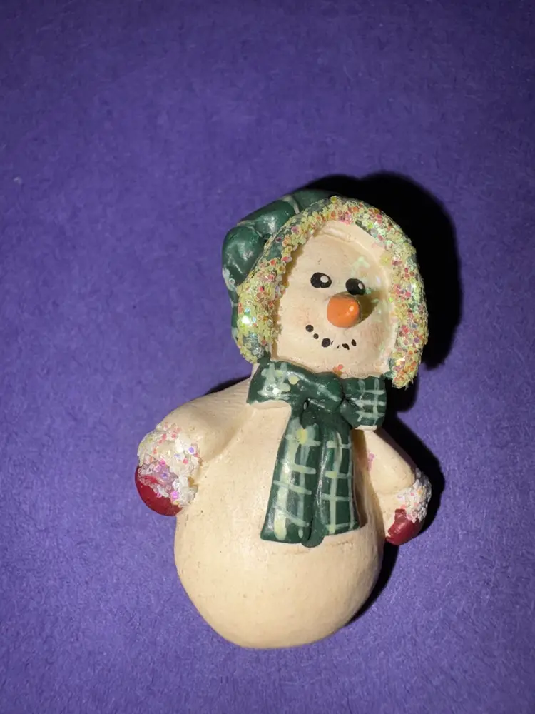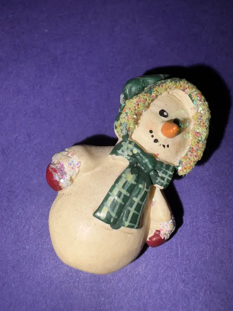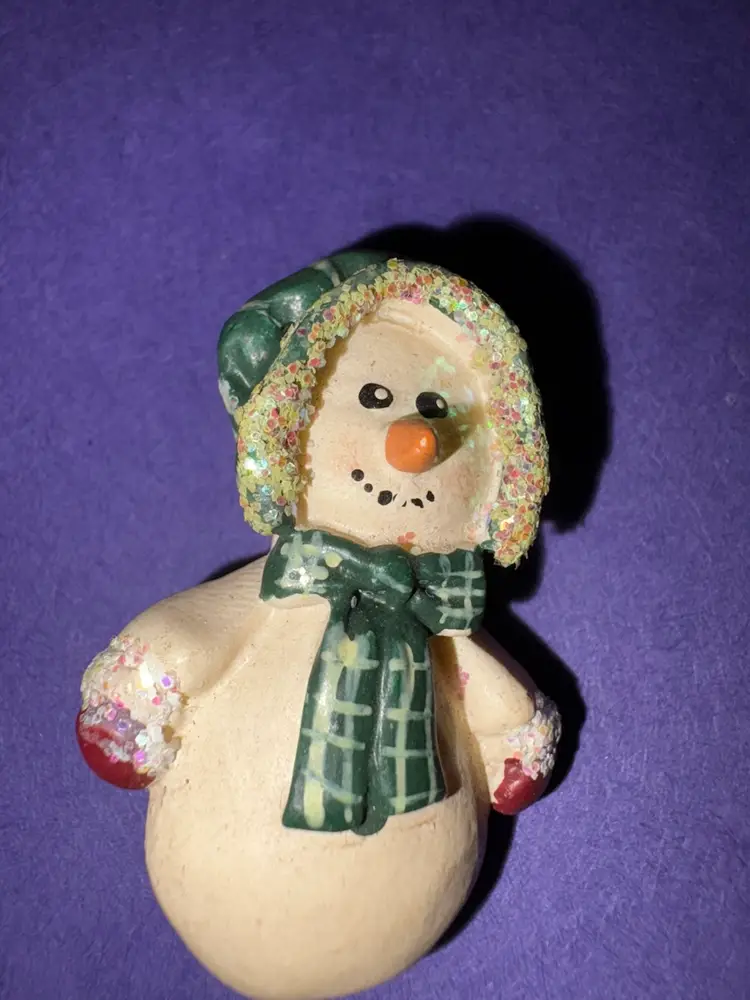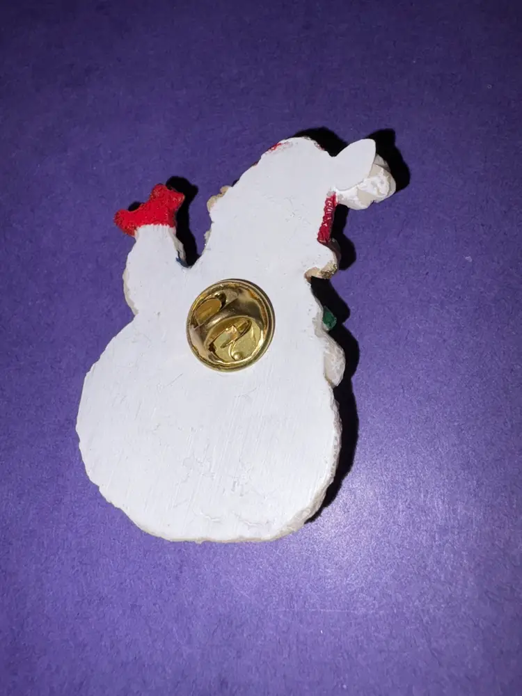 These adorable Christmas snowman brooches / pins are in good vintage condition. One has a bit of glitter and one is holding a cardinal..