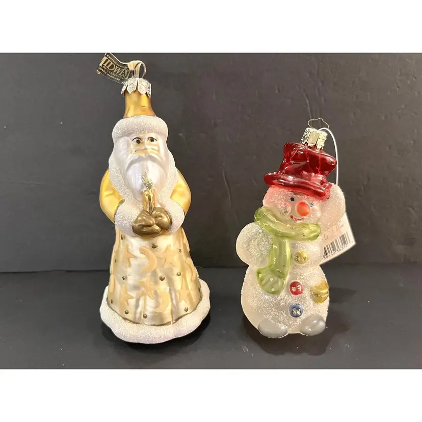 Description: Vintage MIDWEST Blown Glass Christmas Ornaments Original Tags Santa (old world santa) Snowman (Crystalized) Lot of 2 Ornaments Great Estate Find!!