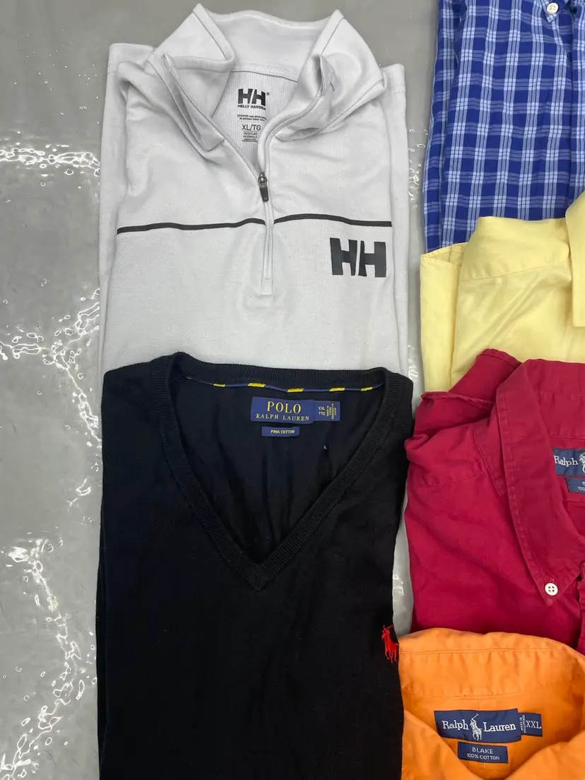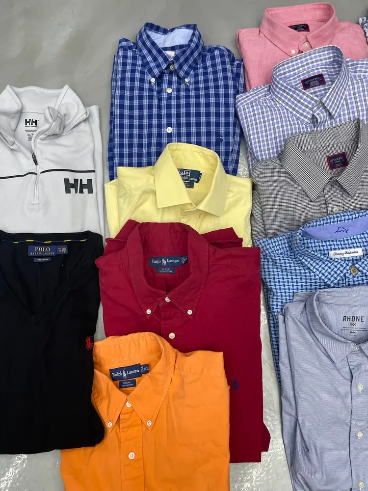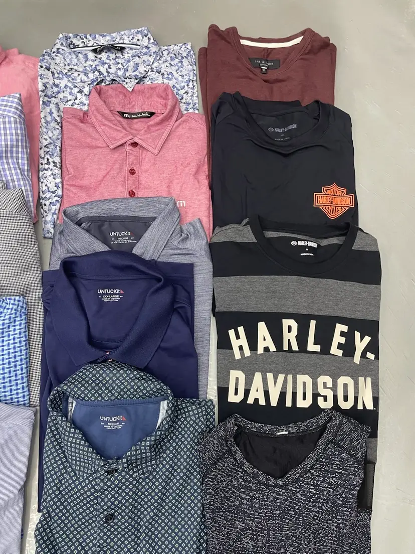 All in excellent condition - no flaws All sizes shown in photos/videos All men’s except for the 1 Lululemon top 3 sweater pullovers, 9 button ups, 5 polos, 3 t-shirts/tops Tommy bahama is silk Rag and bone is lightweight sweater Striped Harley is long sleeve -Easy double up your money.