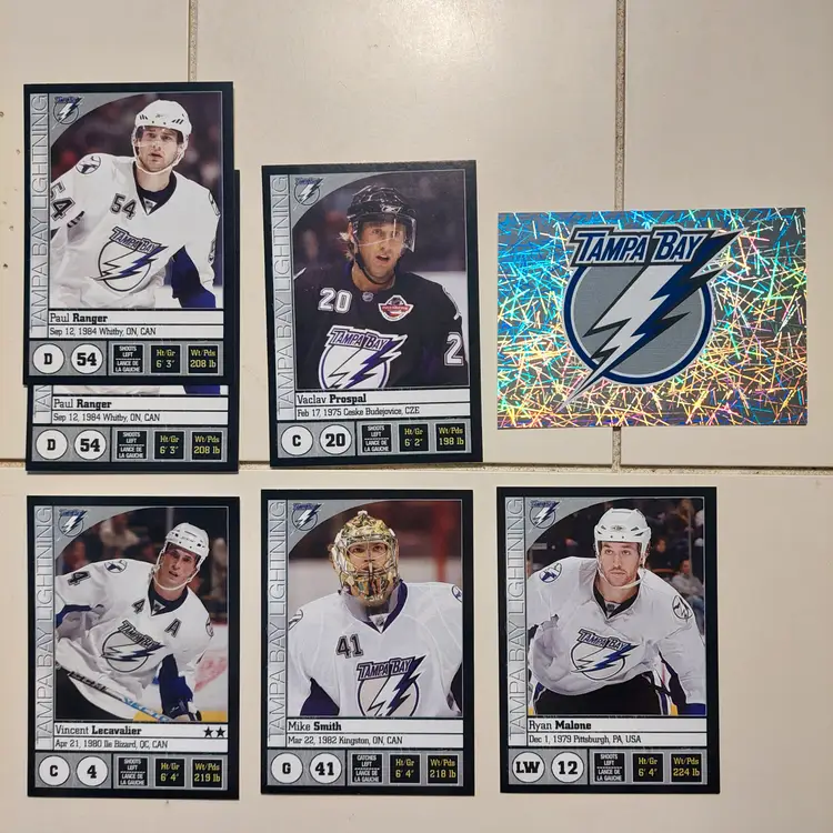 Stickers: Vincent Lacavalier. Mike Smith. Ryan Malone. Paul Ranger Vaclav Prospal. Team logo.