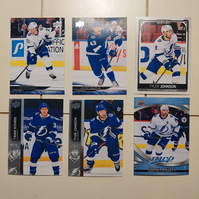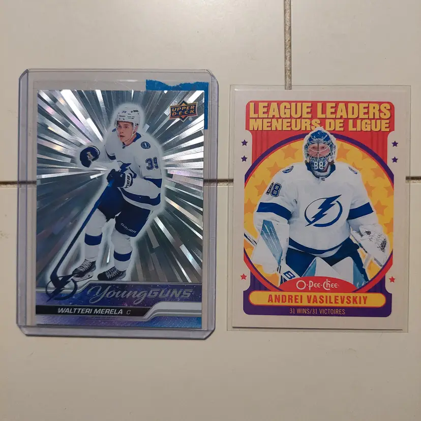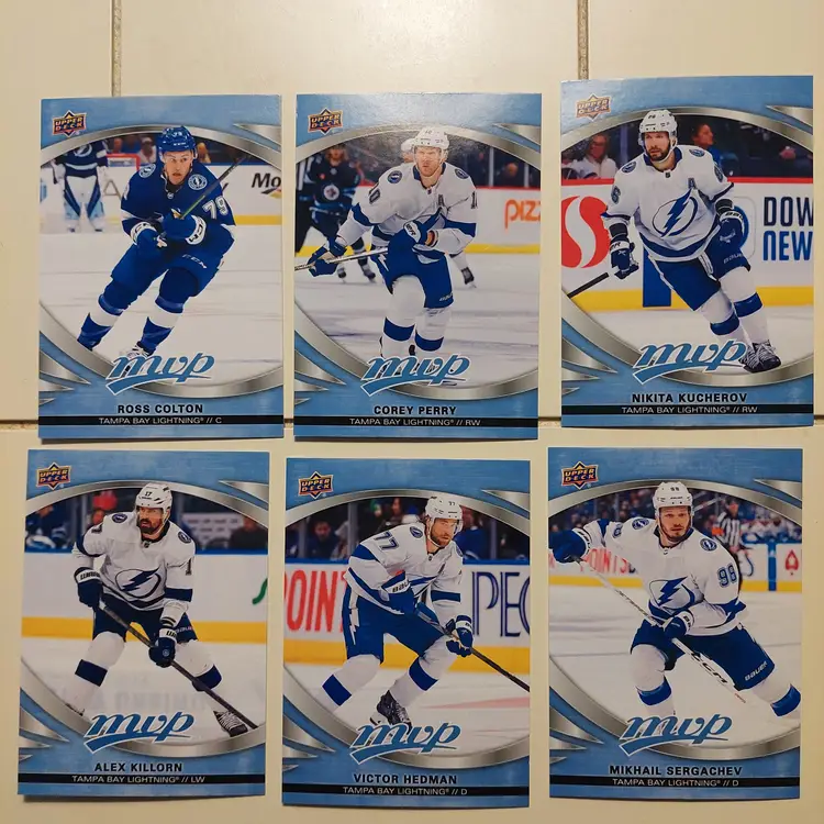 PLAYERS INCLUDED IN THE LOT: Waltteri Merela (outburst young guns) Andrei Vasilevskiy Tyler Johnson Darren Raddysh Brayden Point Yanni Gourde Steven Stamkos Alex Killorn Mikhail Sergachev Victor Hedman Ross Colton Corey Perry Nikita Kucherov