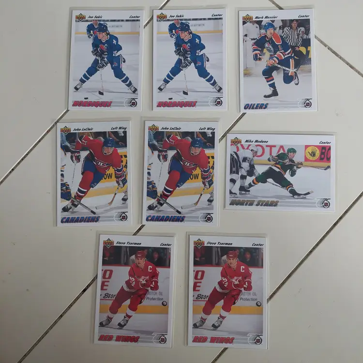 2 of Jaromir Jagr card 42. 2 of Ed Belfour 164. Ed Belfour card 39. Ed Belfour card 81. Jaromir Jagr card 20. Felix Potvin card 460. Tony Amonte card 450. Mark Messier card 14. Canada cup card 7. Zigmund Palffy card 16. 2 of Valeri Kamensky card 273. 2 of Joe Sakic card 333. Mark Messier card 246. 2 of John LeClair card 345. Mike Modano card 160. 2 of Steve Yzerman.