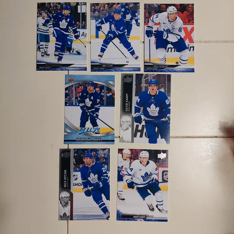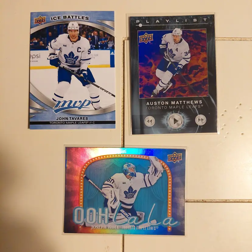 PLAYERS INCLUDED IN THE LOT: Joseph Woll (ooh la la) Austin Matthews (Playlist) John Tavares (ice Battles) Morgan Rielly Max Domi David Kampf Nick Ritchie Mitch Marner William Nylander Jake Muzzin Wendel Clark
