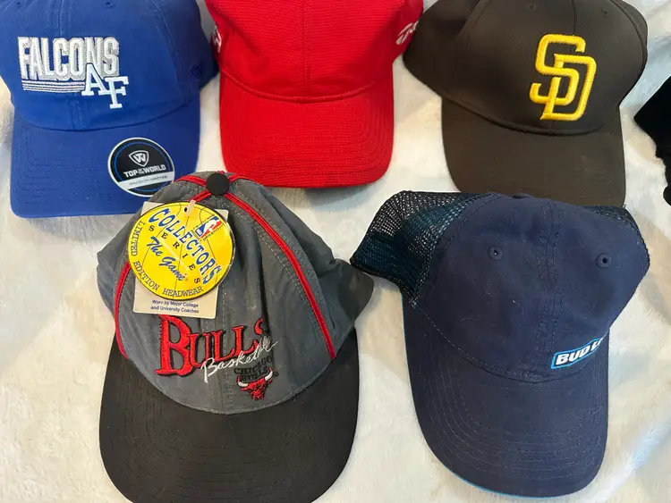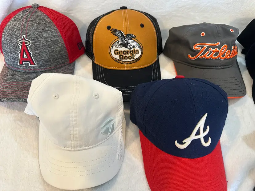 White Ping USS Kennedy Snap Back K Products Snap On Tools Snap Back Fitted San Francisco New Era Fitted Kansas City New Era 59 Fifty Titleist New Era Georgia Boot Snap Back New Era Angels Atlanta Team MLB Taylormade TMax Gear One White One Red San Diego Team MLB Bud Light Snapback Chicago Bulls Collectors Series 69 of 2000 Snap Back Still has Tags Falcons AF Top of the World Still has Sticker on Bill Foo Fighters Snap Back Youth? NWA Naturals Fitted OC Sports Denver Nuggets New Era Ford Racing Golden Nugget Snap Back Graybar K Products Atlanta Braves Titleist Georgia Top of the World Mercedes Toyota NWA