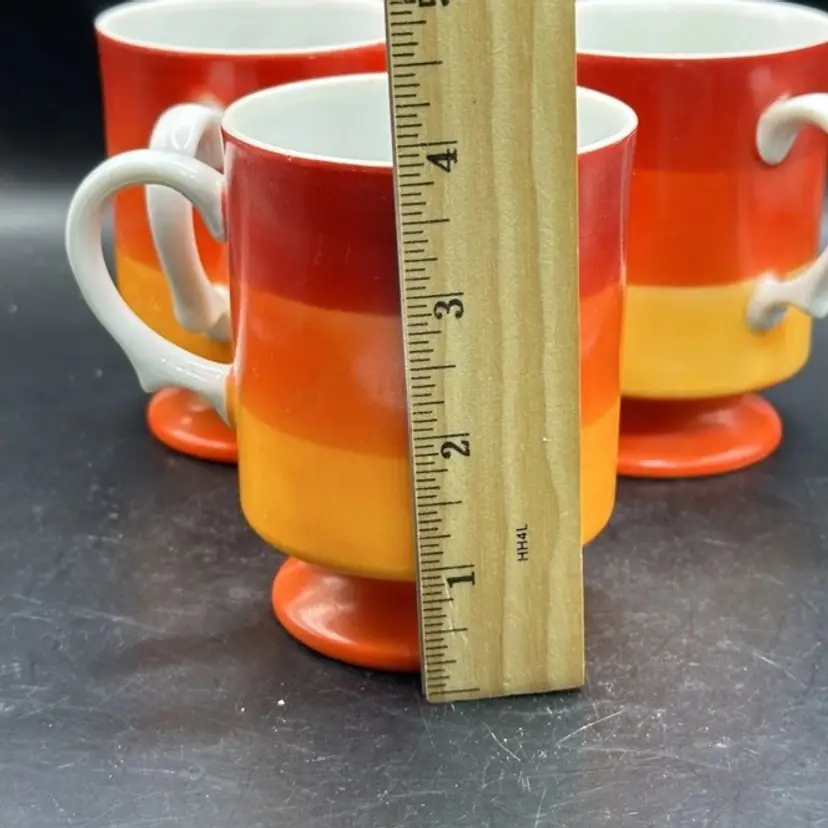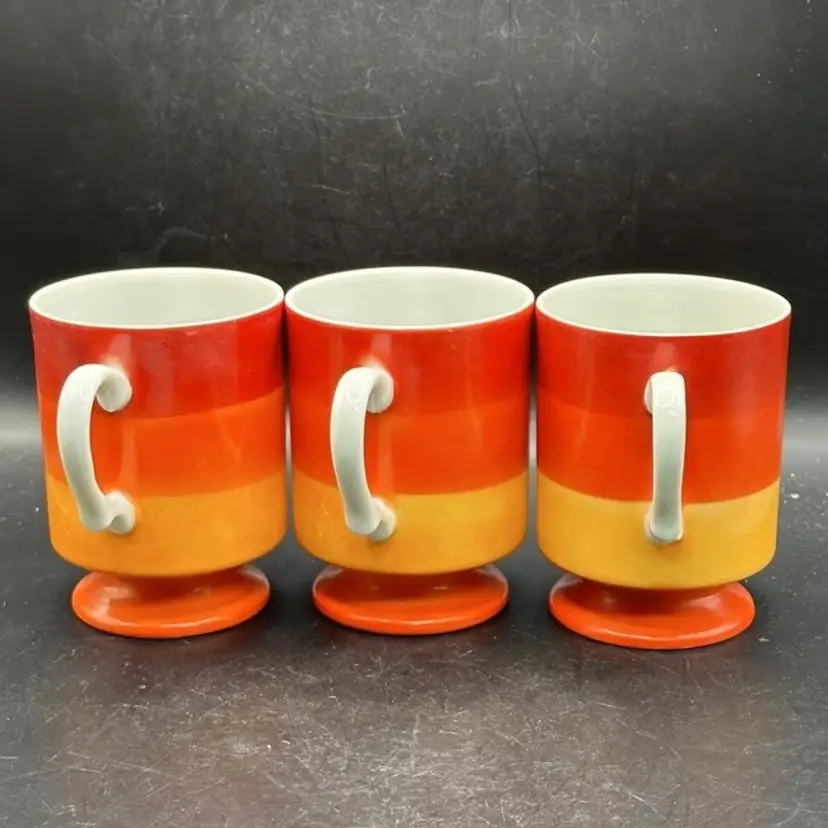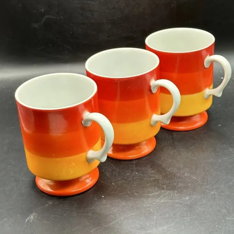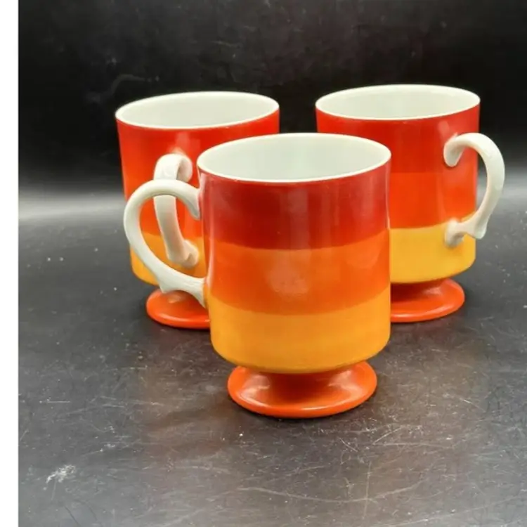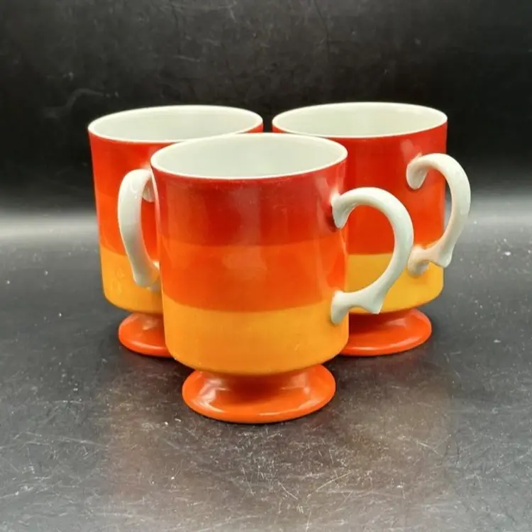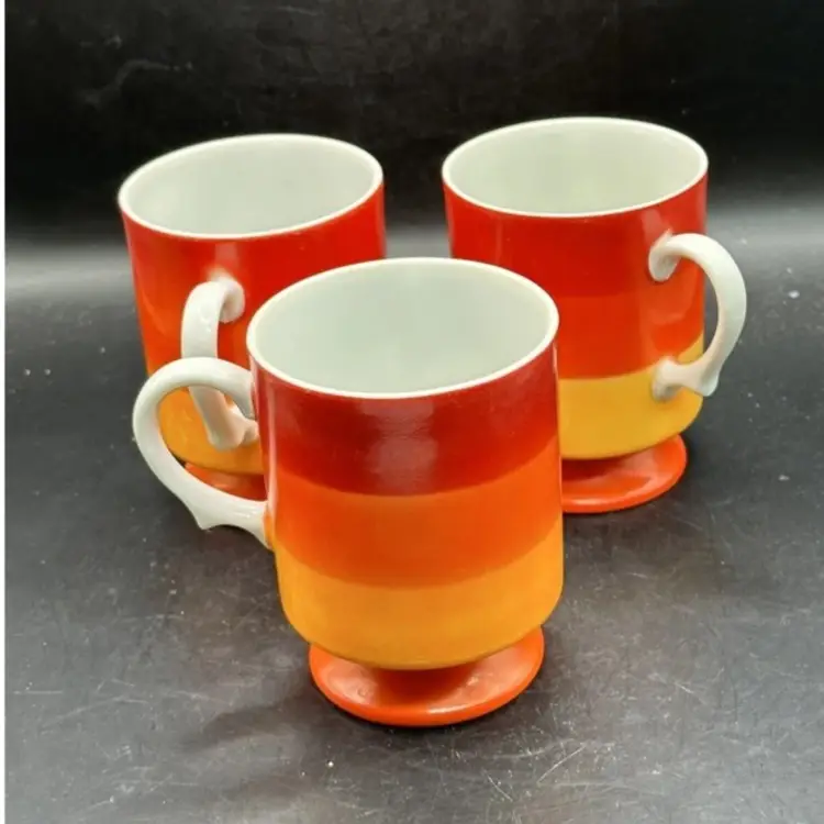 Elevate your coffee experience with these vintage Howard-Holt coffee mugs. The orange striped design adds a pop of color to your kitchen and is perfect for all occasions. Crafted from high-quality porcelain, these mugs are both durable and aesthetically pleasing.