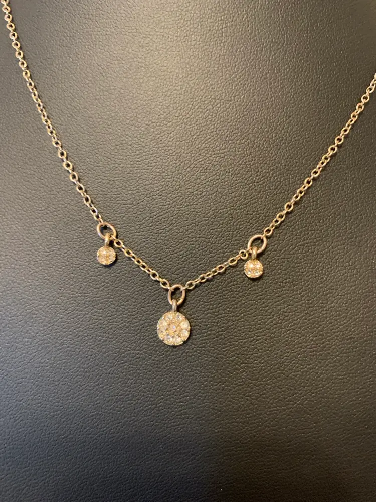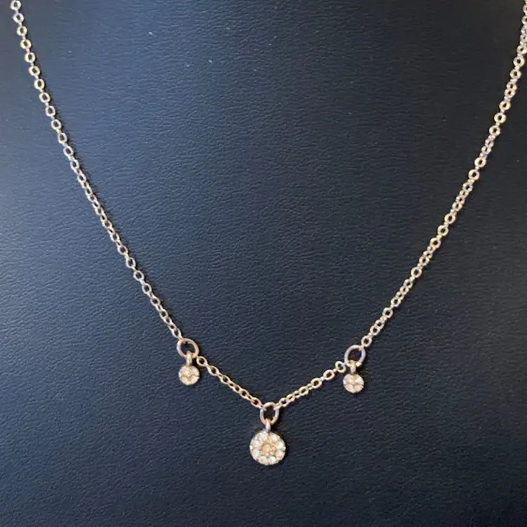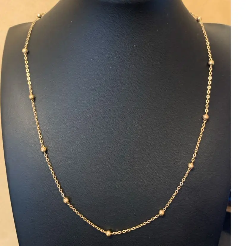 Two are gold tone and one silver tone Gold tone has small bead stations and measures 15 inches with 3 in extender Silver tone with rhinestone flowers is 15 inches with 3 inch extender Gold tone with oval stone measures 15 inches with 3 inch extender All are in good condition Stop spending 50-60 dollars for your dainty necklaces!