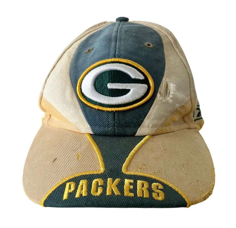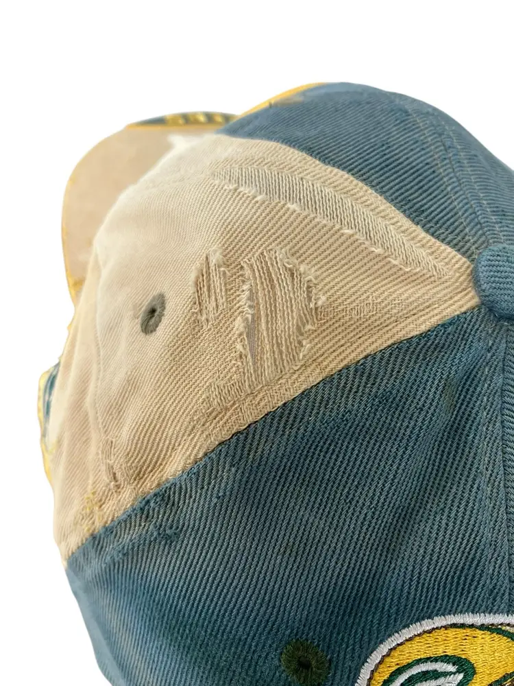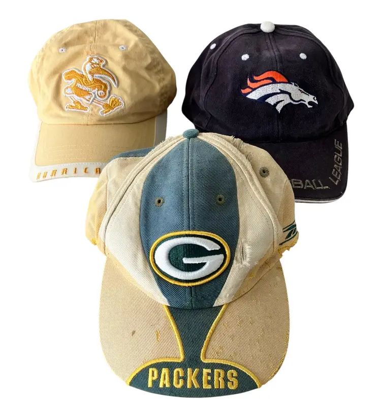 Packers, Broncos and Miami Hurricanes. Packers hat is distressed