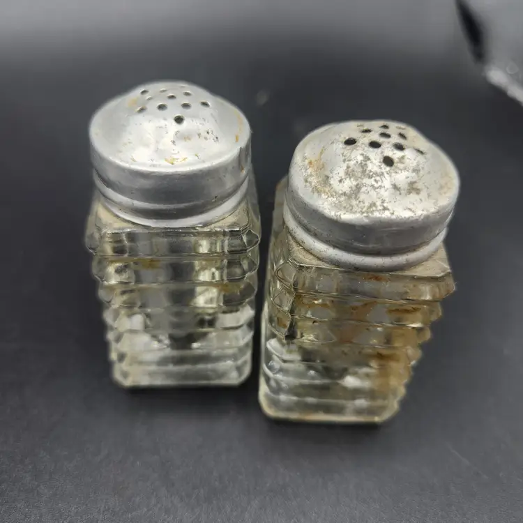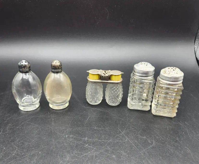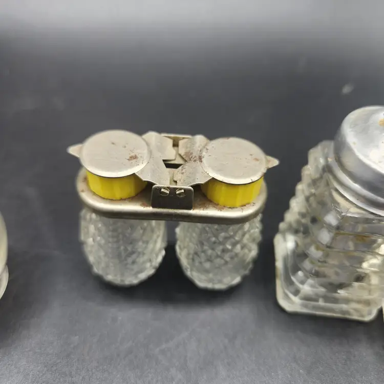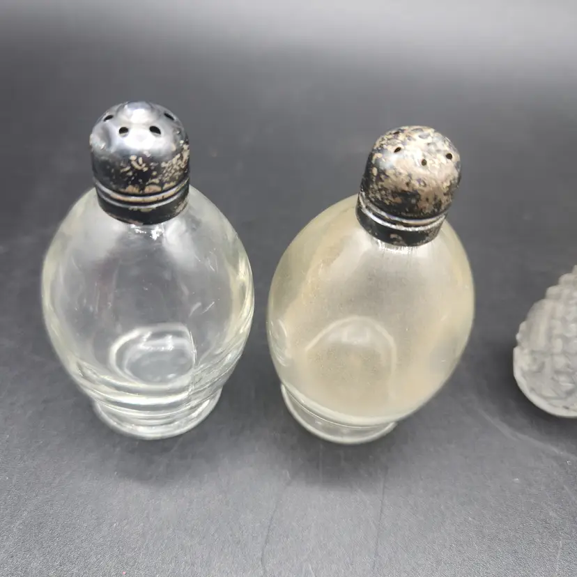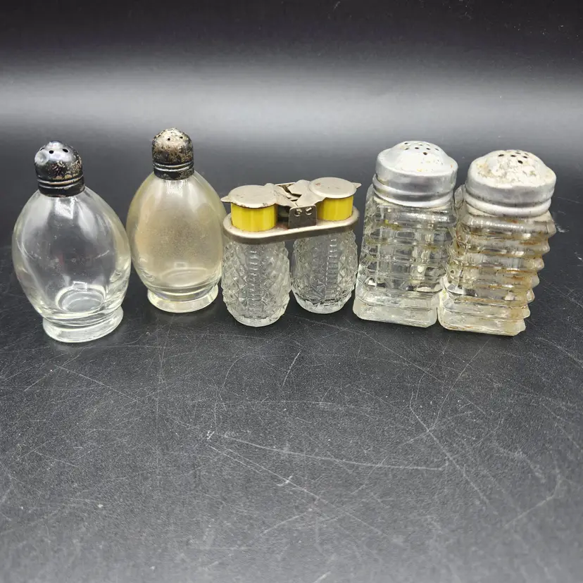 Lot of 3 Glass and Metal Salt and Pepper Shakers Vintage. They are all in good condition, no cracks or chips. They do need to be cleaned, dusty from storage.