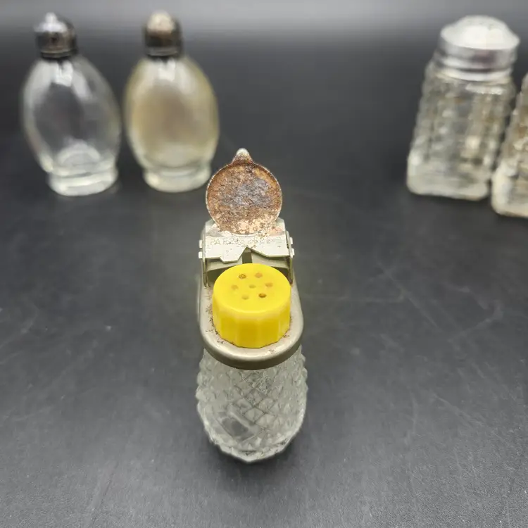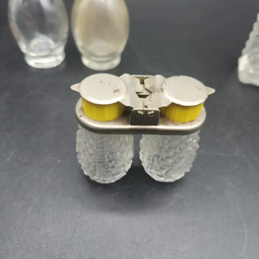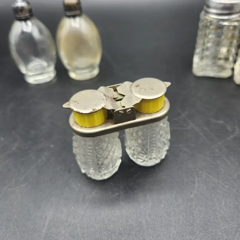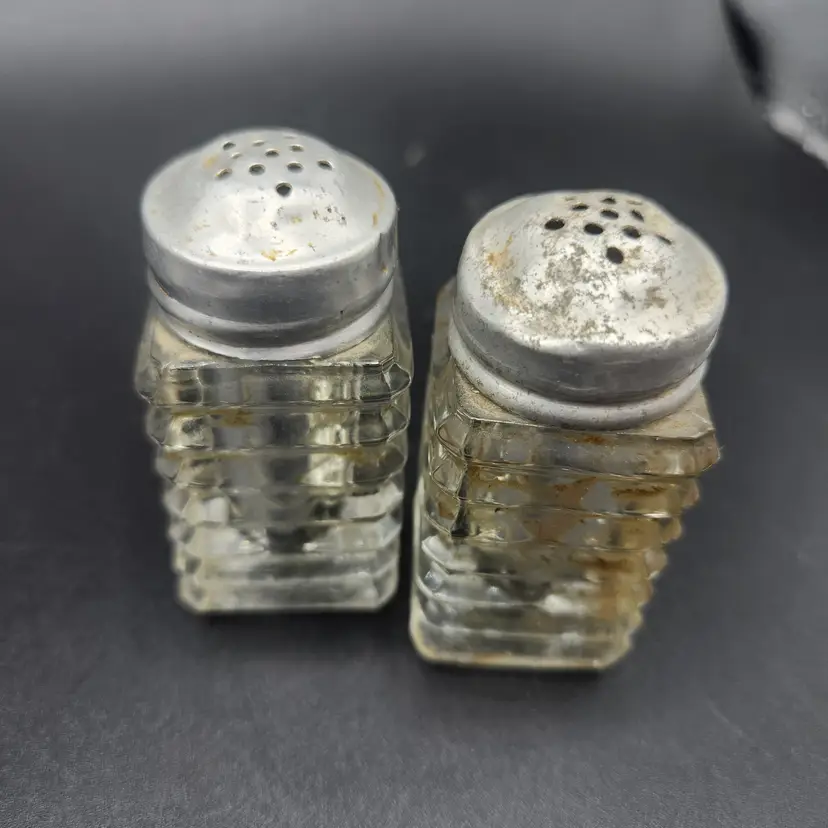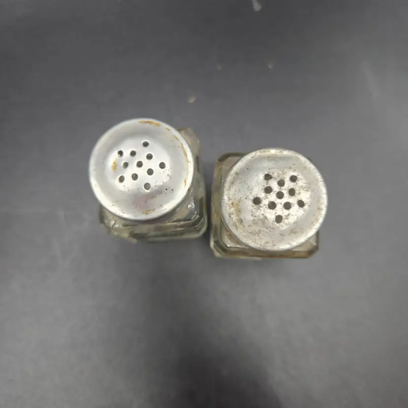 Lot of 3 Glass and Metal Salt and Pepper Shakers Vintage. They are all in good condition, no cracks or chips. They do need to be cleaned, dusty from storage.