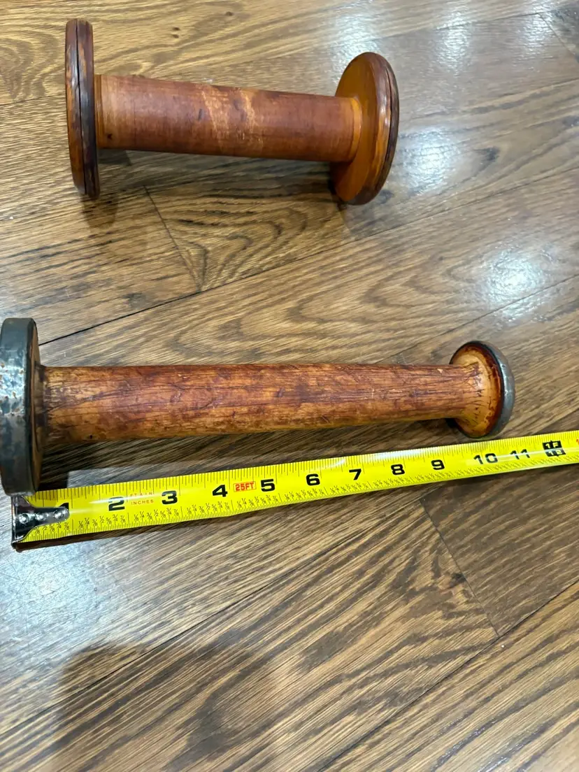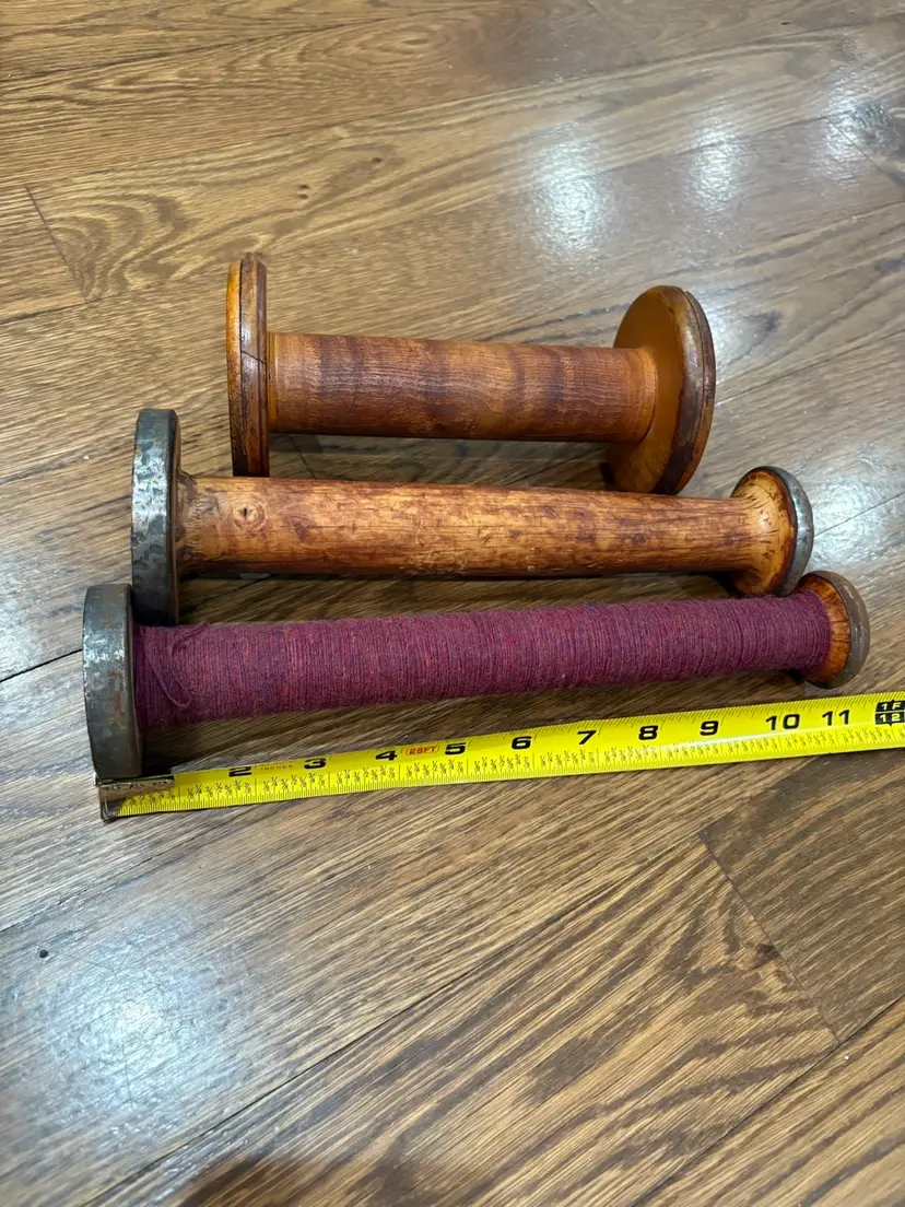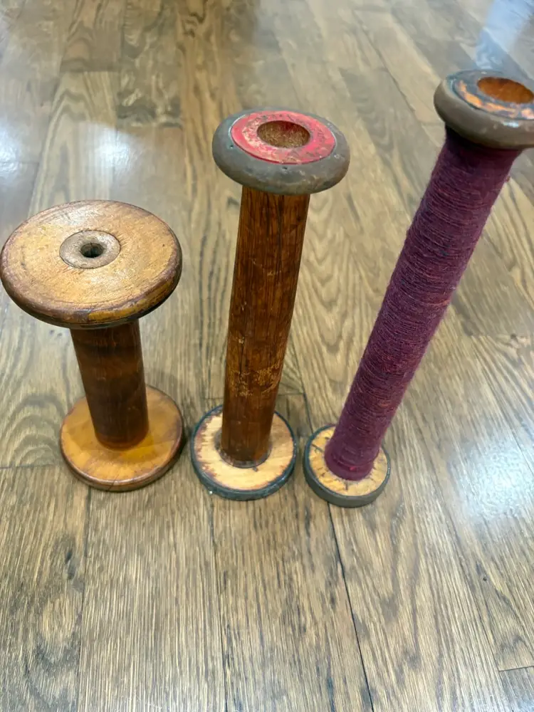 Lot of 3 Industrial Wooden Textile Spools Bobbins