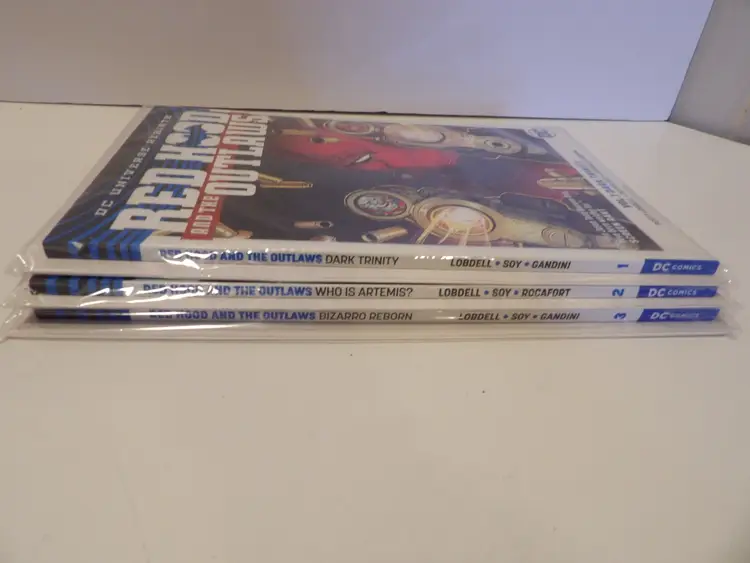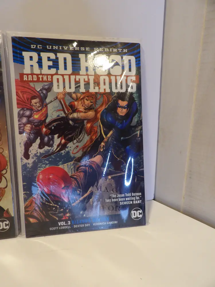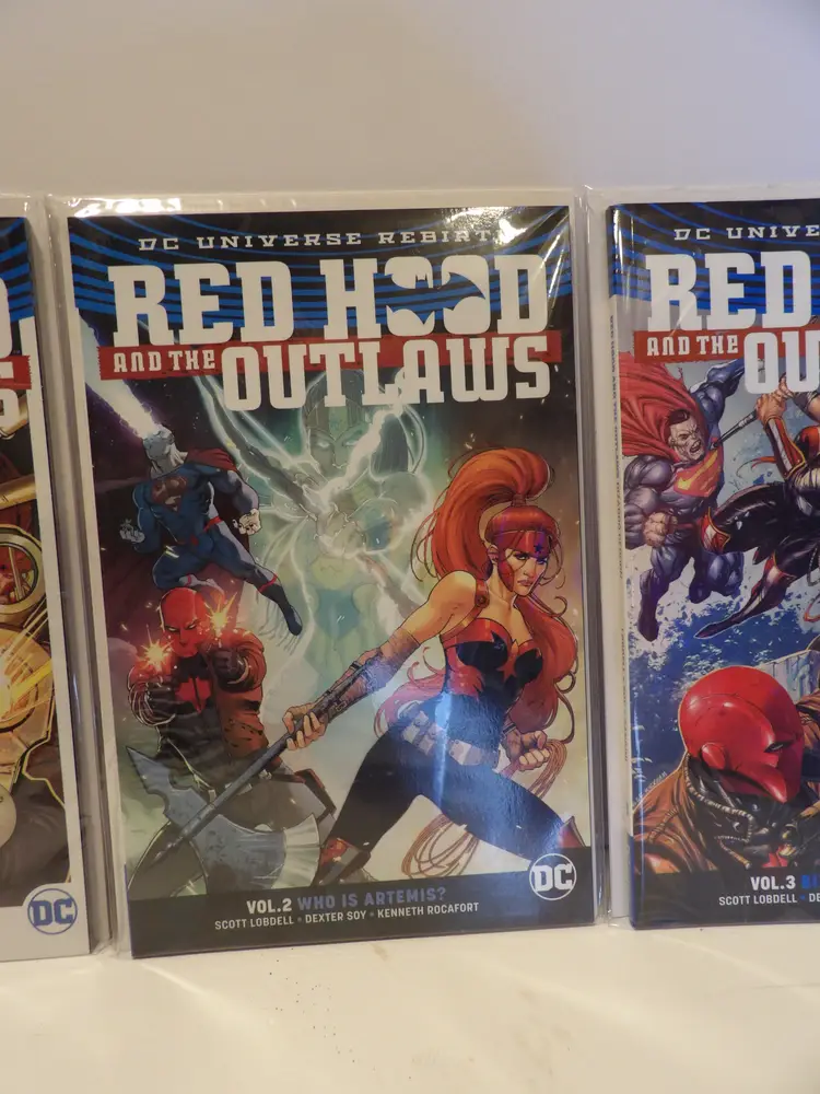 This is a lot of 3 Red Hood and the Outlaws comic books. It is books 1-3 and they are bagged and boarded. Please see pictures. (Mirabel)