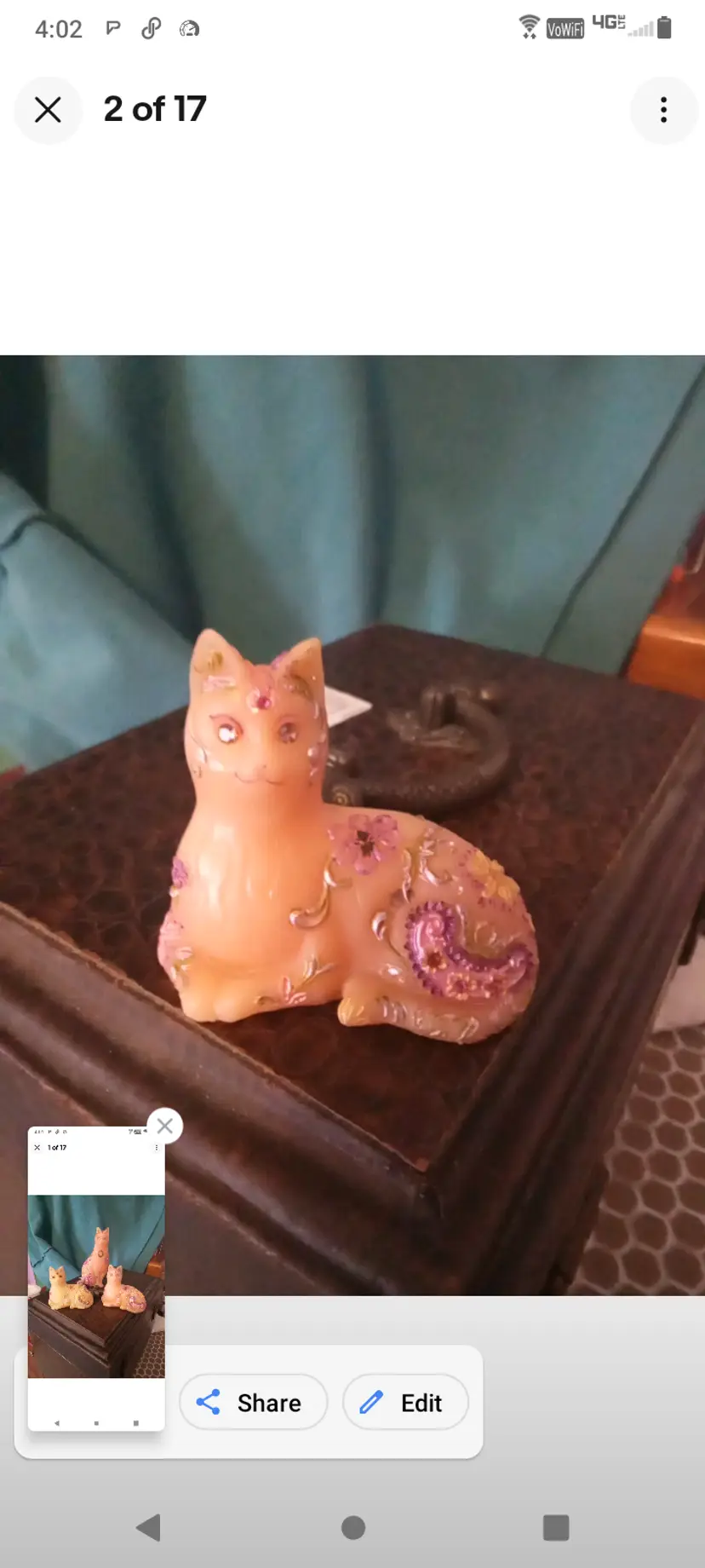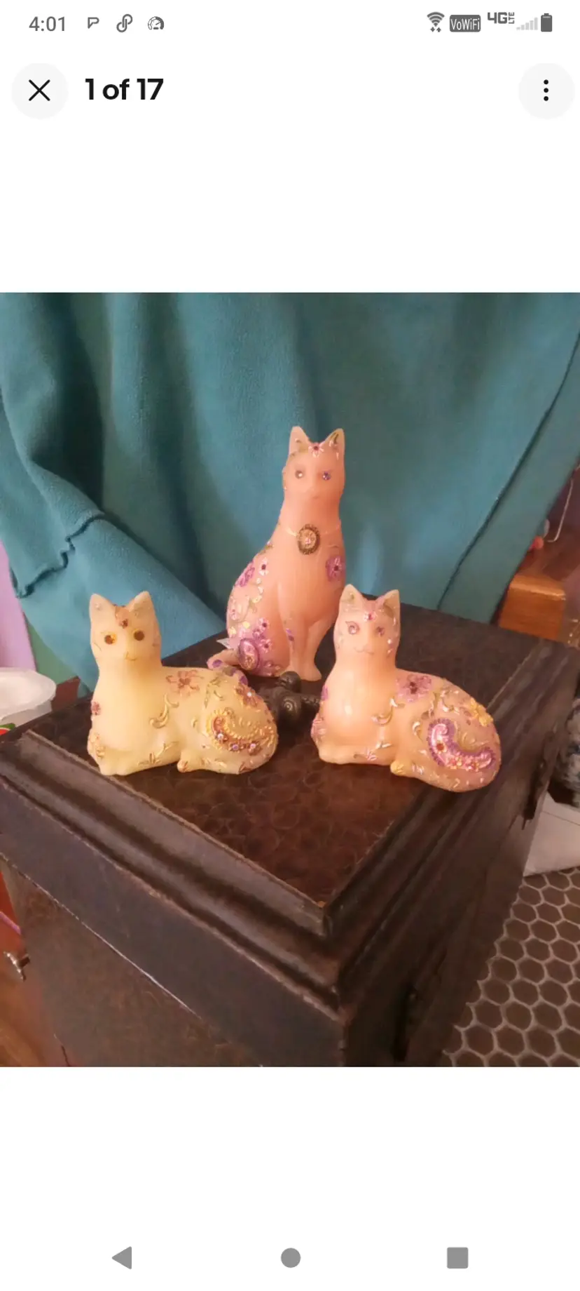 Lot Of 3 Unique Cats Hand Painted With Crystal Accents Pink And Ivory Resin