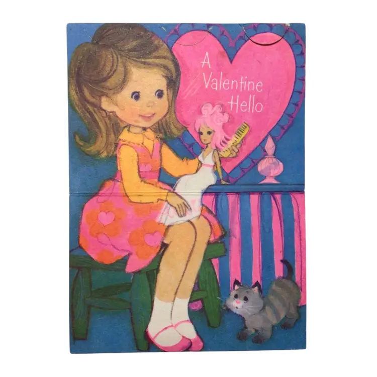 The tab at the top of the Hallmark little girl brushing dolls hair is partially ripped off See photos for reference Largest card (girl with doll) is 6” X 4.5”