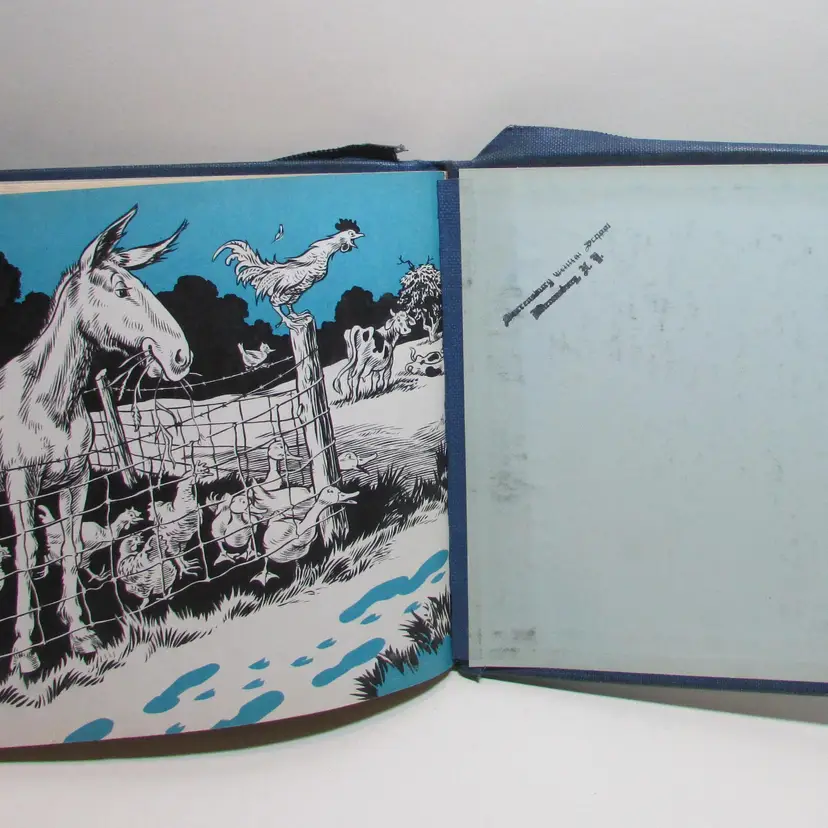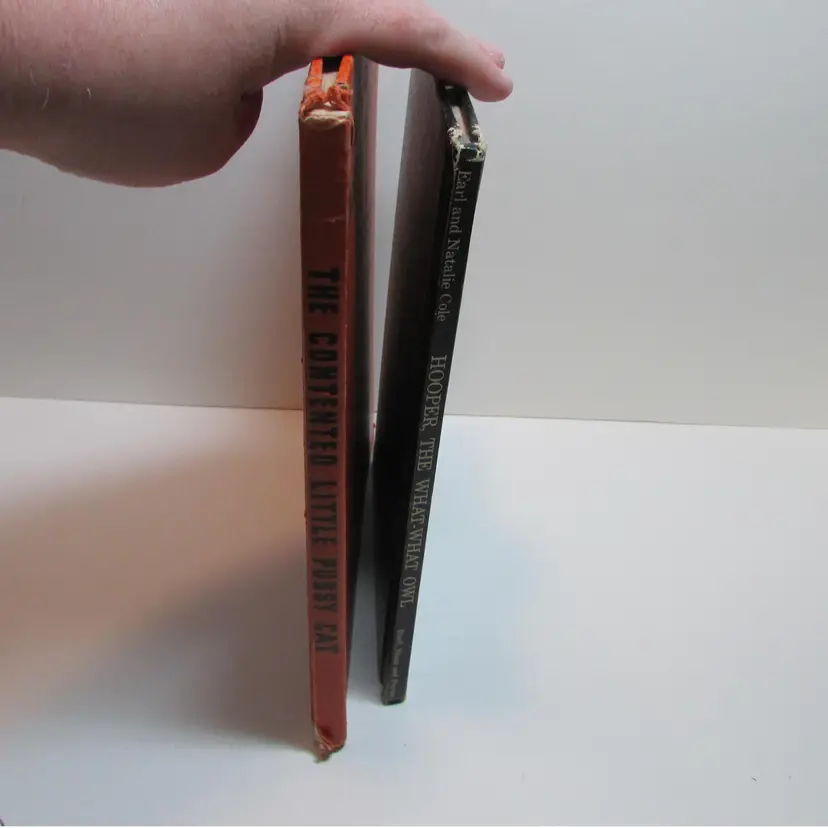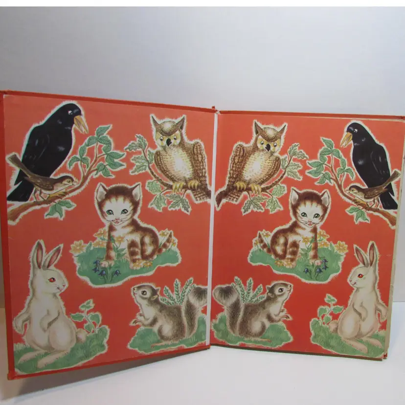 This group of books has some wear, the covers have some damage. The cat book has pages taped and come creased pages. The owl has some writing on several pages by binding. Still a nice set to display, read or use for crafts. The largest book is about 10" x 8" and the smallest is about 9 1/4" x 6 1/2". This is shipped from a smoke free home. Thanks for looking!