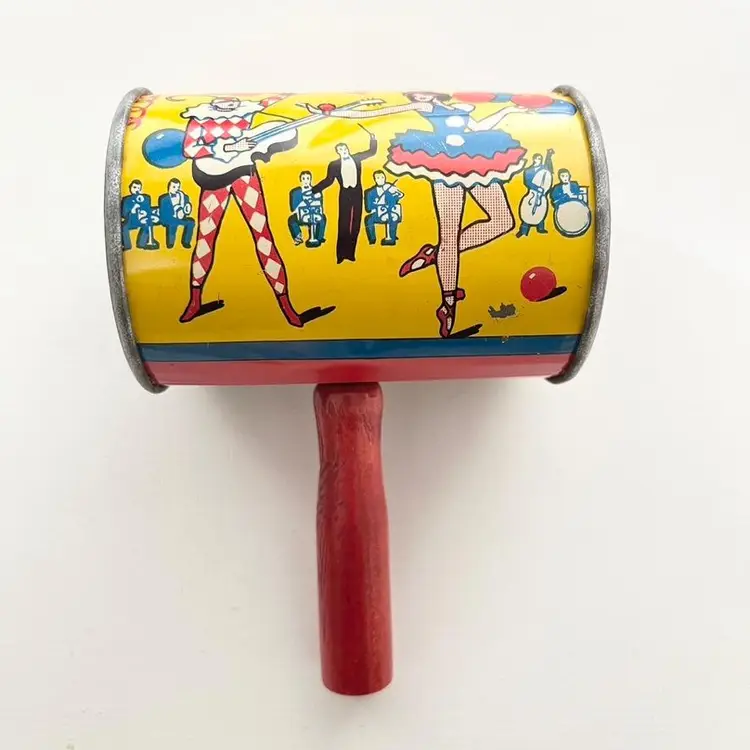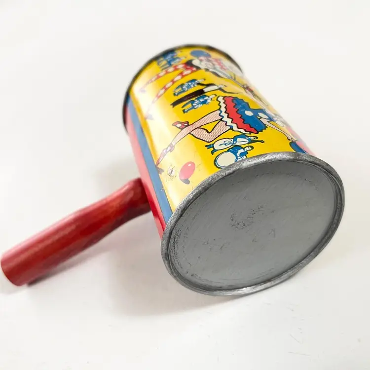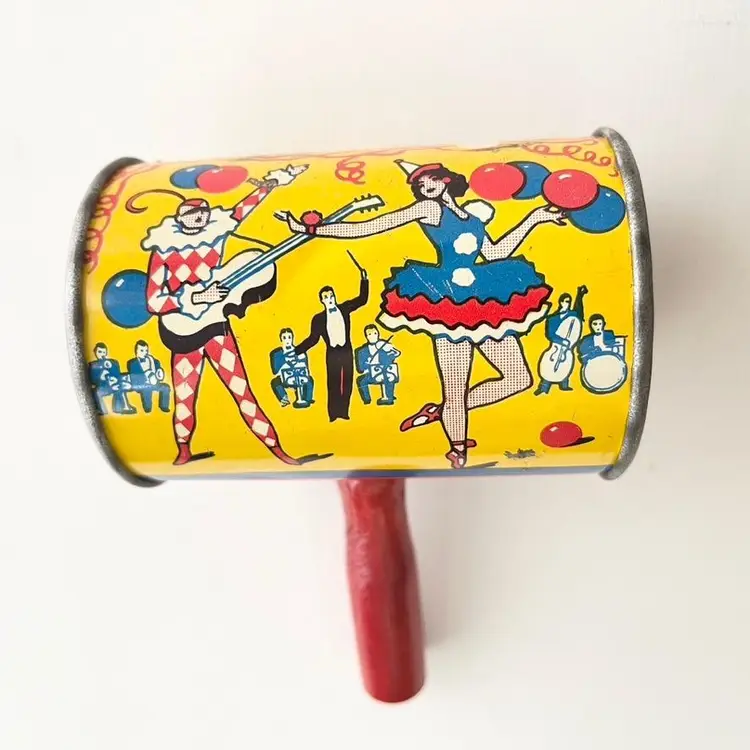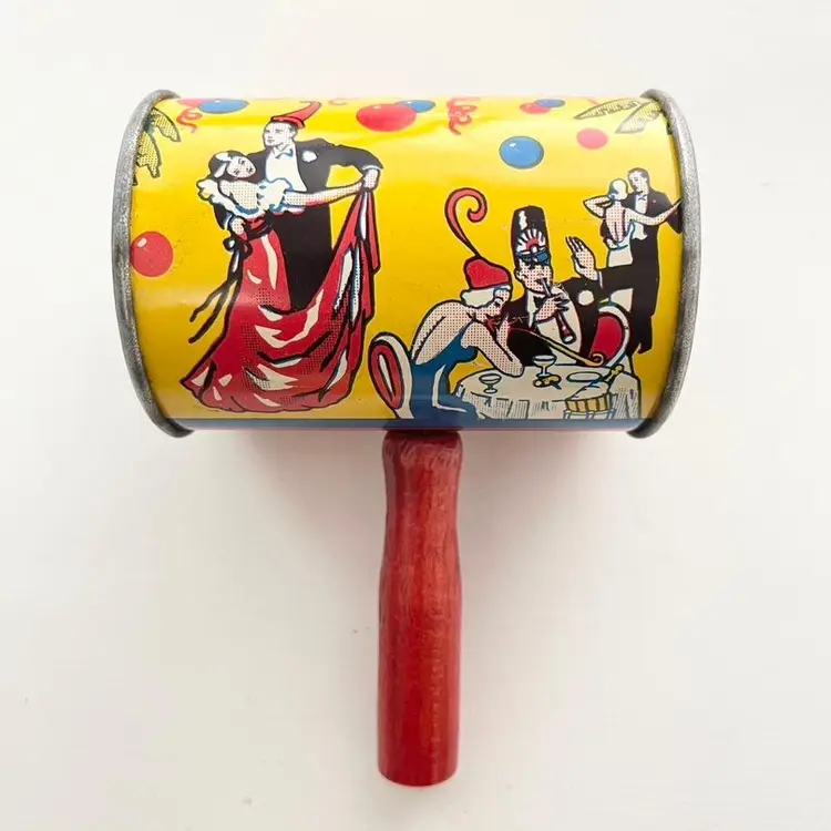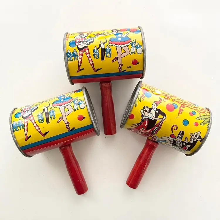 Tin Noise Maker Toy Vintage 1940s Life of the Party Lot of 3 Multicolor Party Favors Decorations Metal Rattles With Wood Handles US Metal Toy Mfg Co, NY Made in USA Condition: Wear, paint chips, scratches, tarnish. One has a few small rust spots on the end cap and around the rim. Measures 3-1/4 inches x 2-1/4 inches With a 2-1/2 inch Handle Packaged in a rigid box Visit my store to see more vintage ephemera, advertising, novelties, gifts, estate sale and yard sale finds https://district.net/u/finderspickerspaper SKU B4