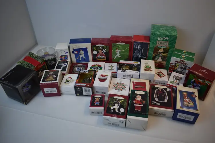 Lot of 31 Chrismas Ornaments. Mostly Hallmark All with Box