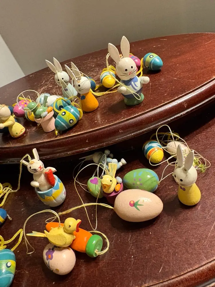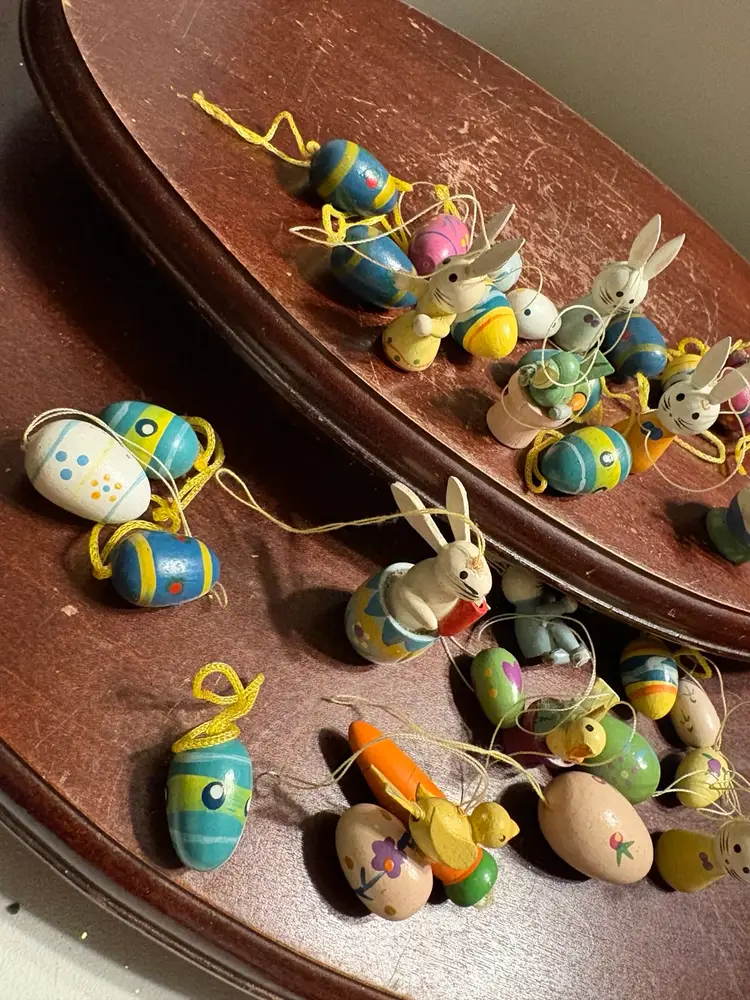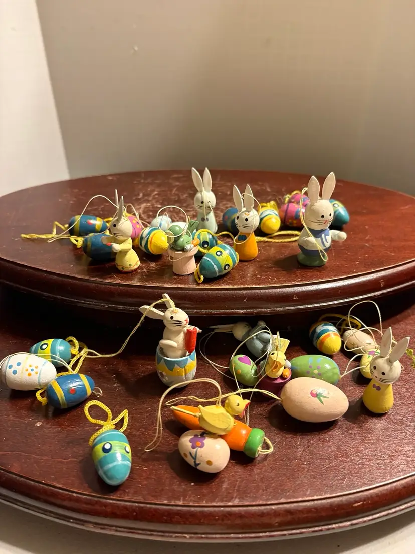 All wooden ornaments between 1-2” in height, all have strings for hanging but can easily be removed for a mini tray