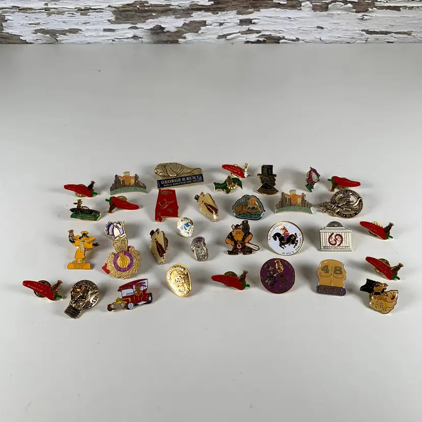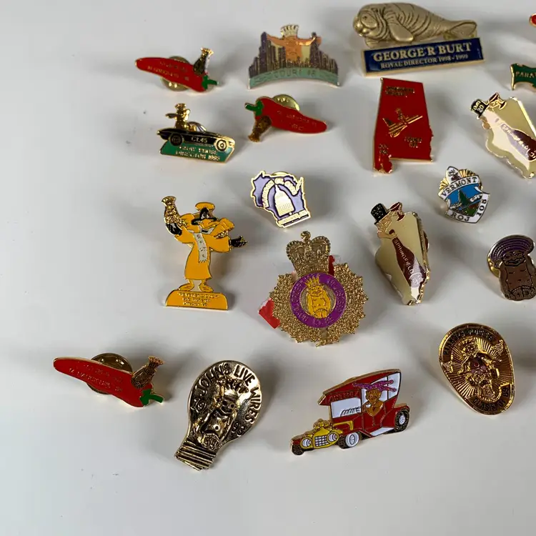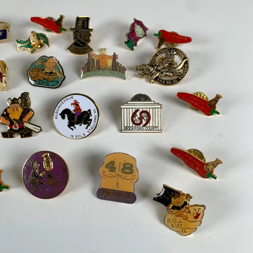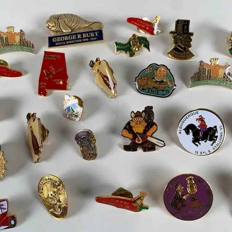 Lot of vintage hat/lapel pins for the Royal Order of Jesters Fraternal Organization. Various chapters and years (mostly 1990's). There are a few duplicates. Shipping from South Central Illinois.