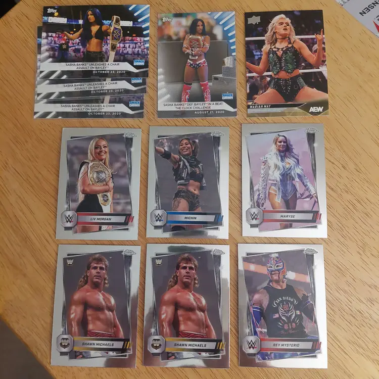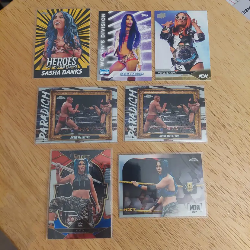 Sasha Banks / Mercedes Moné: 2023 leaf heroes of wrestling yellow Parallel. 2021 Topps Woman's Division roster card. 2025 Upper Deck AEW first UD.