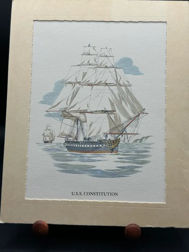 This product is a lot of 4 lithographs from the Marax Classic Ship Series, featuring the U.S.S Constitution and other ships as the subject. The lithographs are small in size, made on watercolor paper, and matted for framing. While the prints are not signed by Picasso, they are part of a matted series, adding to their appeal for art collectors interested in ship-themed artwork. Each lithograph measures 8 inches in length and 10 inches in height, making them a unique addition to any art collection focusing on maritime themes.