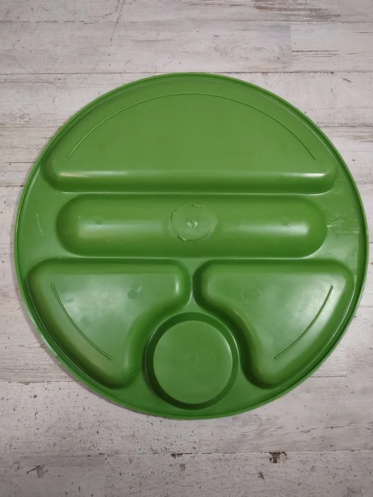 Used vintage condition with wear and scuffing. Trays measure approximately 12" in diameter. See photos for more detail.