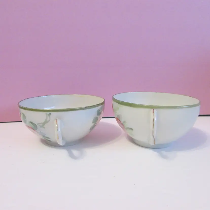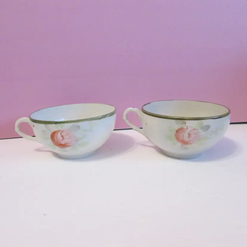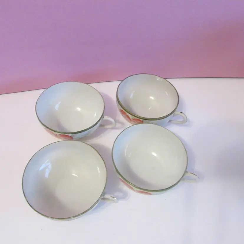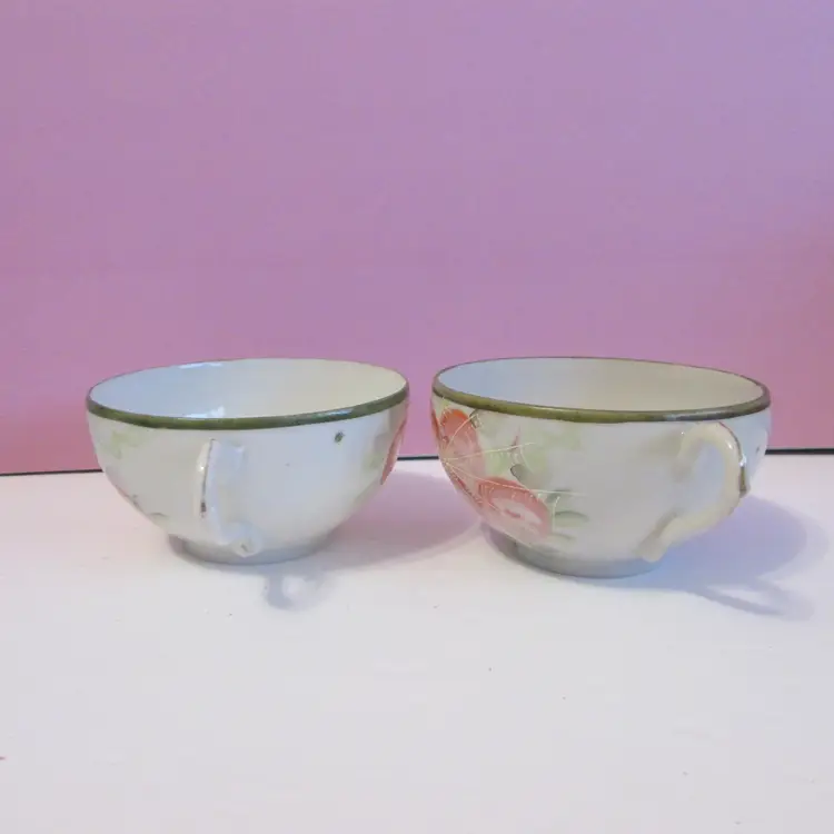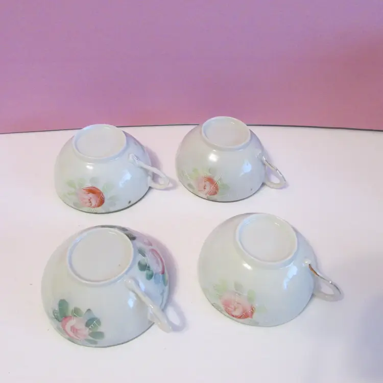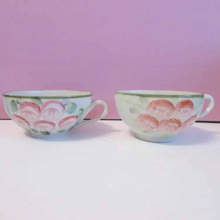 This beautiful set has some wear, but still a lovely set to use and display. There is a raised design over the flowers, it reminds me of cobwebs.