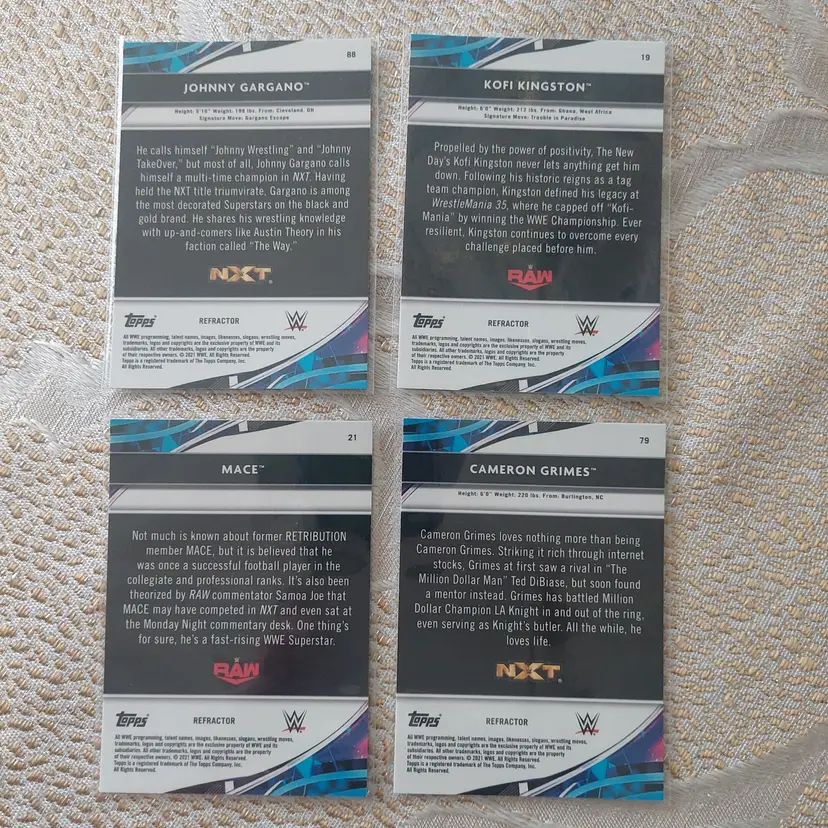 2021 Topps Finest. Kofi Kingston, Johnny Gargano, Mace rookie card, Cameron Grimes.