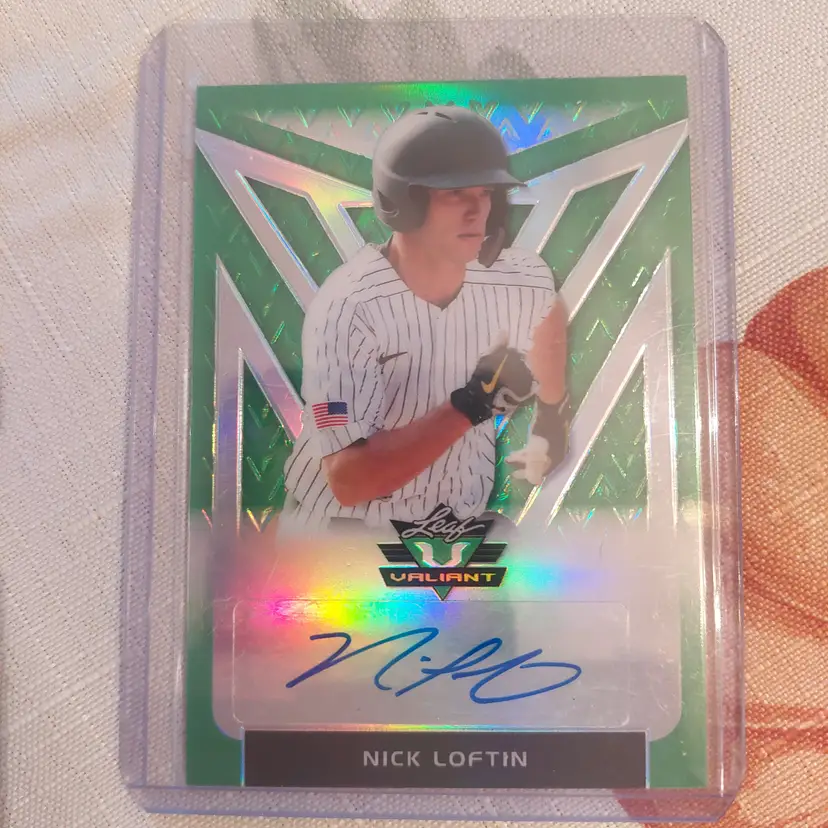 Nick Loftin auto. #64/99. 2020 Leaf Valiant portrait green Parallel.