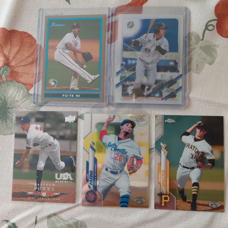 Fu-Te Ni 2009 Bowman World Baseball Classic Insert. Gold Parallel. Ryusei Ogawa 2021 Topps Chrome Nippon. Matthew Purke 2008 Upper Deck USA Baseball Insert. Luis Patino 2020 Topps Pro Debut Chrome. Quinn Priester 2020 Topps Pro Debut Chrome.