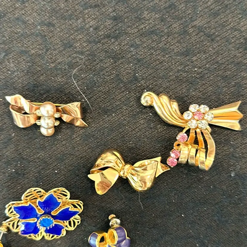 One missing stone in the pink brooch.CLOSE-OUTS All group lots are sold as-is. Stones may be missing so please look at the photos'. Thank you :)