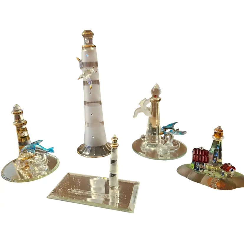 Illuminate your space with this exquisite glass lighthouse decor set. Featuring elegant gold and silver details, these pieces bring a touch of charm to any room.