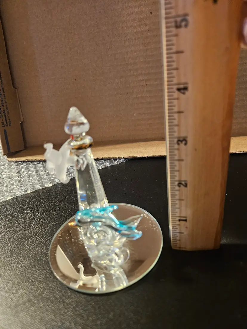 The figurines are made of high-quality, three-dimensional handblown glass. Some feature accents like genuine crystals, 22k liquid gold trim, and mirrored bases.