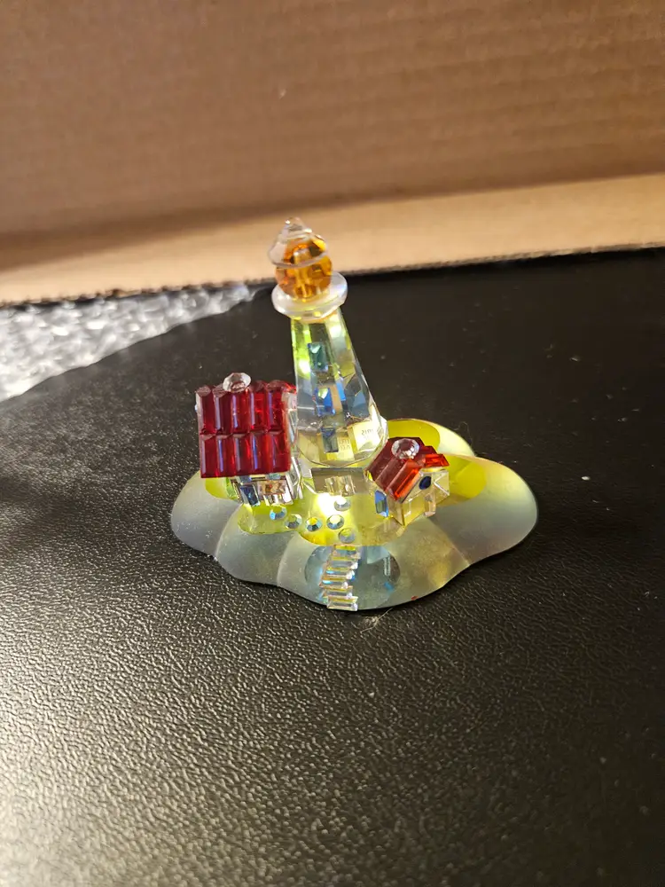 collection of hand-crafted glass lighthouse figurines, some of which are from the Glass Baron collection.