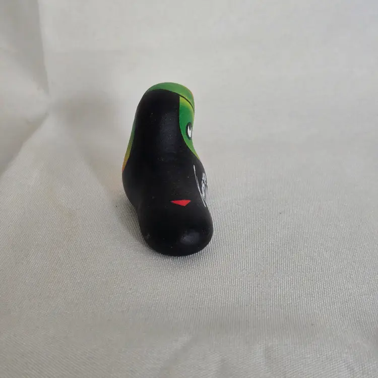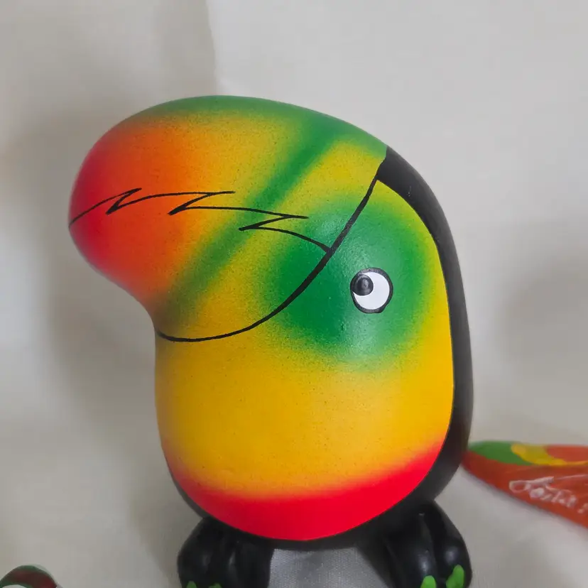 Large Black Toucan-4 1/4" high 3 1/4" long Green Parrot- 1 1/2" high 2 1/2" long Blue Parrot- 1 1/2" high 2 3/4" long Black Toucan- 1 1/2" 2 1/2" long Orange Parrot -2 3/4" high almost 5 1/4" long
