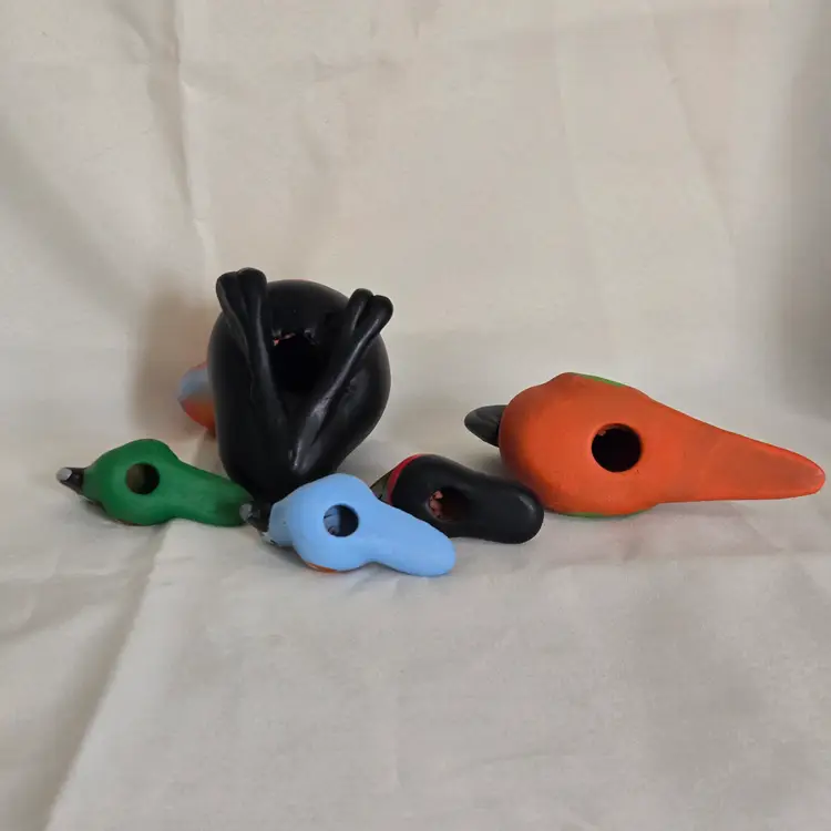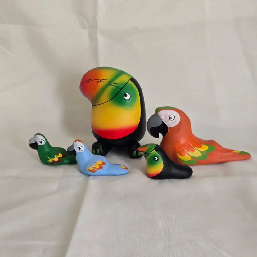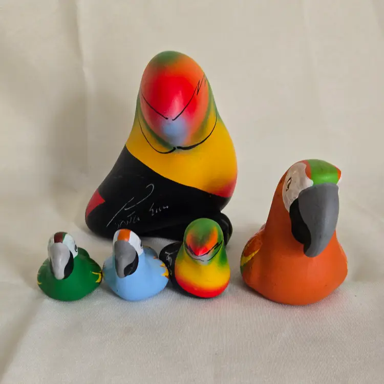 5 Hand Painted Costa Rican Art Pottery Birds.