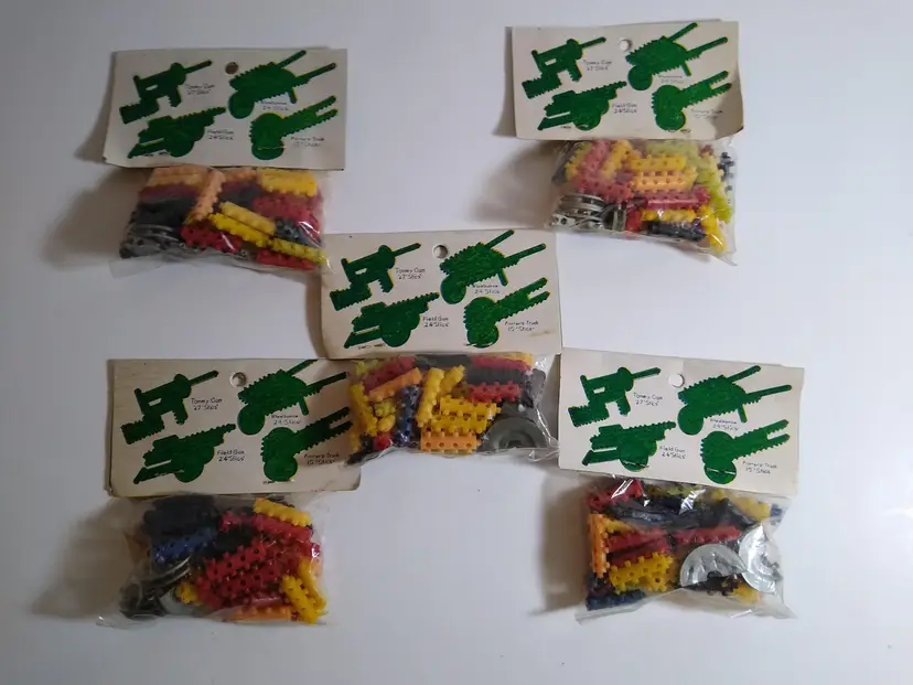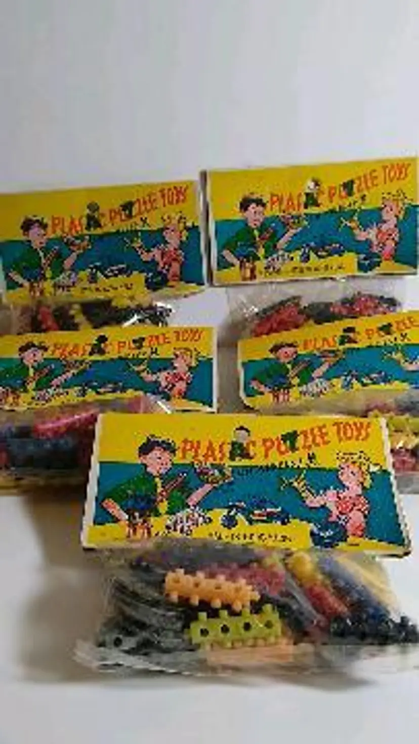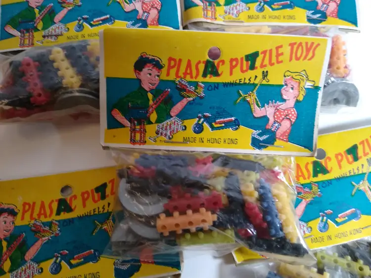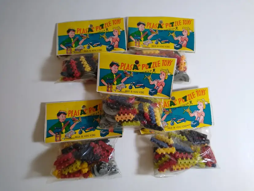 Here is a lot of 5 vintage new old stock plastic puzzle toys. NOT for small children sold only as adult collectible item. All and sealed in the original header cards. Excellent condition.