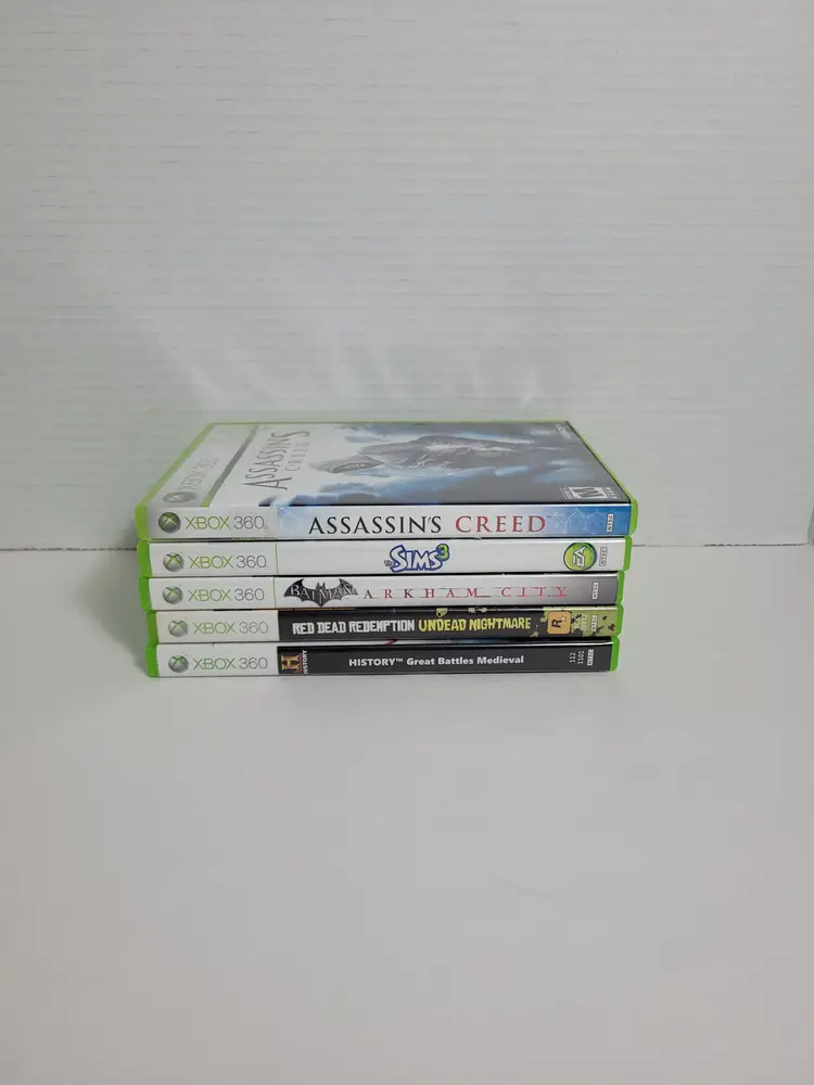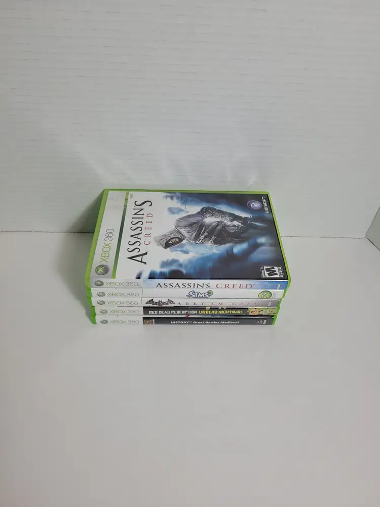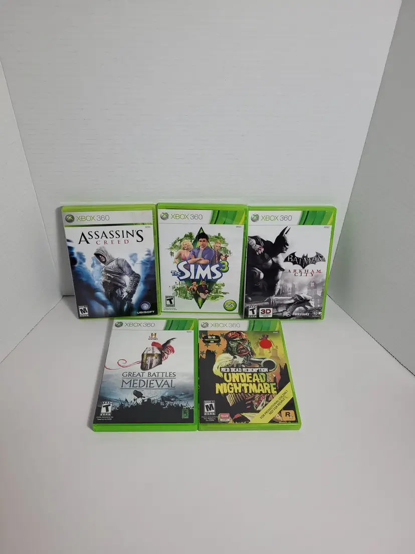 Lot of 5 Xbox 360 Action Strategy Video Games Lot Includes: Assassin's Creed Pre-Owned The Sims 3 Pre-Owned Complete Batman Arkham City Pre-owned Complete Great battles Medieval History Pre-owned Red Dead Redemption Undead Nightmare Pre-Owned Complete Very Good Condition Light wear from normal use See ALL photos for best description Contact me with any questions Ships fast