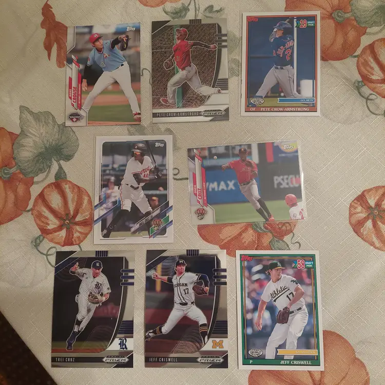 Players also included in the lot: Owen Caissie. Corbin Carroll. Dylan Carlson. Evan Carter. Triston Casas. Burl Carraway. Gabriel Cancel. Luis Campusano. Briam Campusano. Cameron Cannon. Antonio Cabello. Daniel Cabrera. Daz Cameron. Ruben Cardenas. David Calabrese. Isaiah Campbell. Slade Cecconi. Jazz Chisholm. Hyum-Il Choi. C.J. Chatham. Oscar Colas. Darryl Collins. Carlos Cortes. Pete Crow-Armstrong. ONeil Cruz. Trei Cruz. Jeff Criswell.