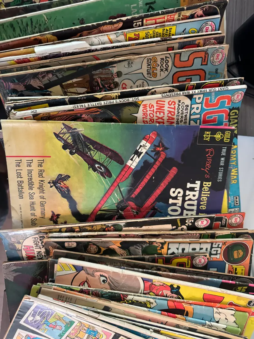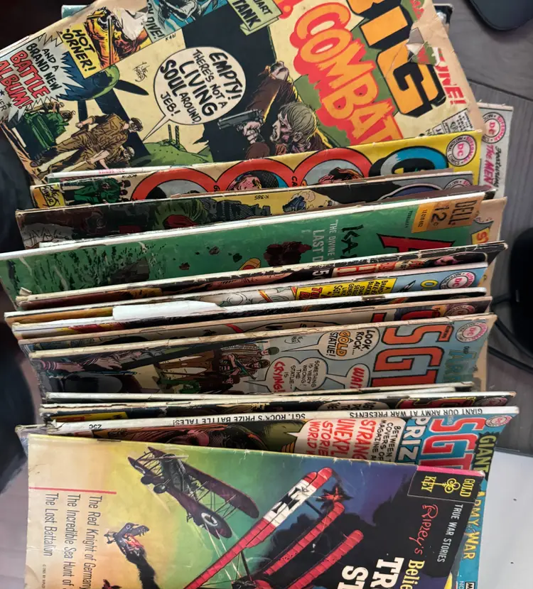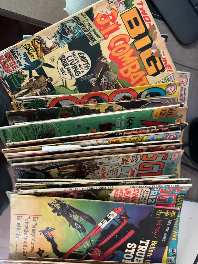 I have picked this variety up at several different estate sales, with all intentions of learning to list them but I just haven't. I don't have a desire anymore. I made a video so you could see the different ones. Lots of old war comics. Hopefully someone can make use of these.