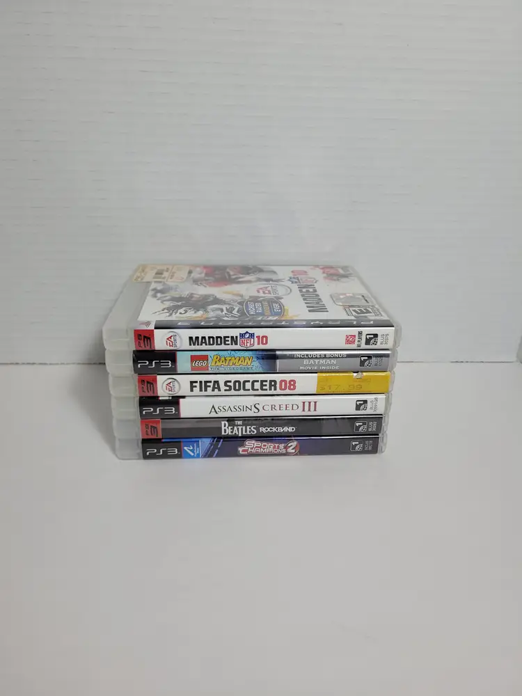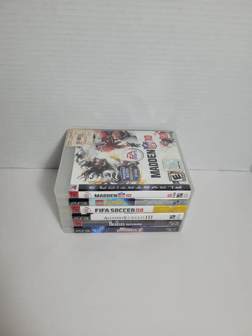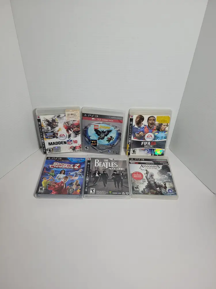 Lot of 6 PS3 PlayStation 3 Mixed Video Games Lot Includes: EA Sports Madden 10 Complete Lego Batman Combo Pack Complete Fifa 08 Soccer Sports Champions 2 The Beatles Rockband Complete Assassins Creed III All Discs are Clean Pre-Owned - Light wear from normal use See ALL photos for best description Contact me with any questions Ships fast