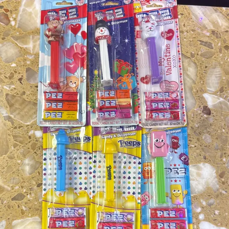 Six different Pez dispensers from Christmas, Valentine’s Day, Easter and more. All new in the packages