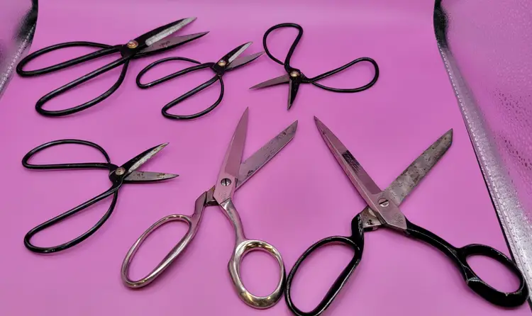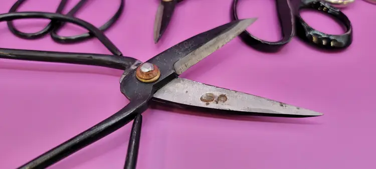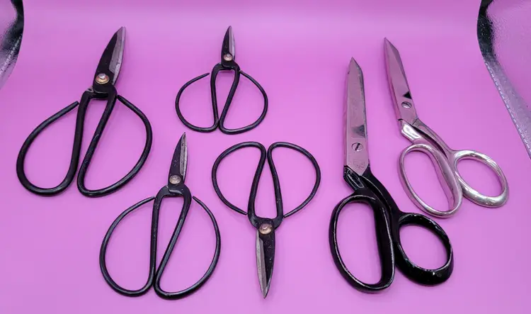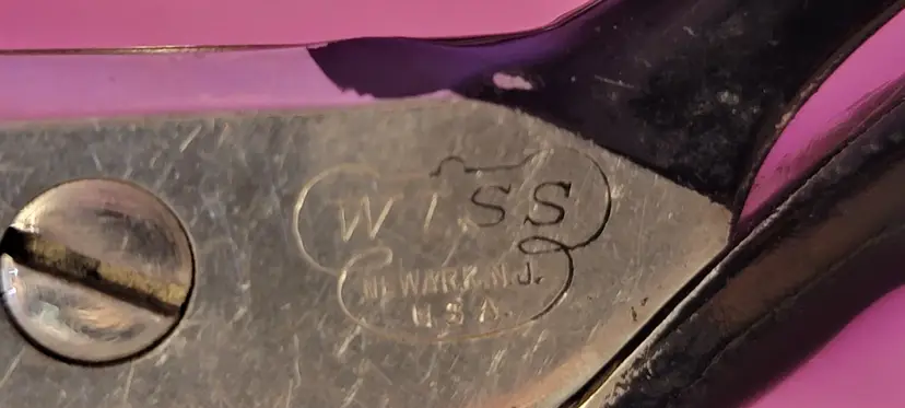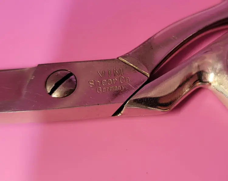 Vintage used Scissor sheers. Lot of 6 (3) Small 4 3/4 inches long these are signed but unknown maker. (1) medium 7 inches long also signed by unknown maker. (1) VIM sheer co. Germany 7 1/4 inches long. (1) WISS Newark NJ USA Steel forged #28 - 8 1/8 inches long All of these scissor sheers are used, with metal discolor, rust spots and wear. The WISS pair and VIM still have a very sharp edge. These are perfect for crafts, collectors, and more.