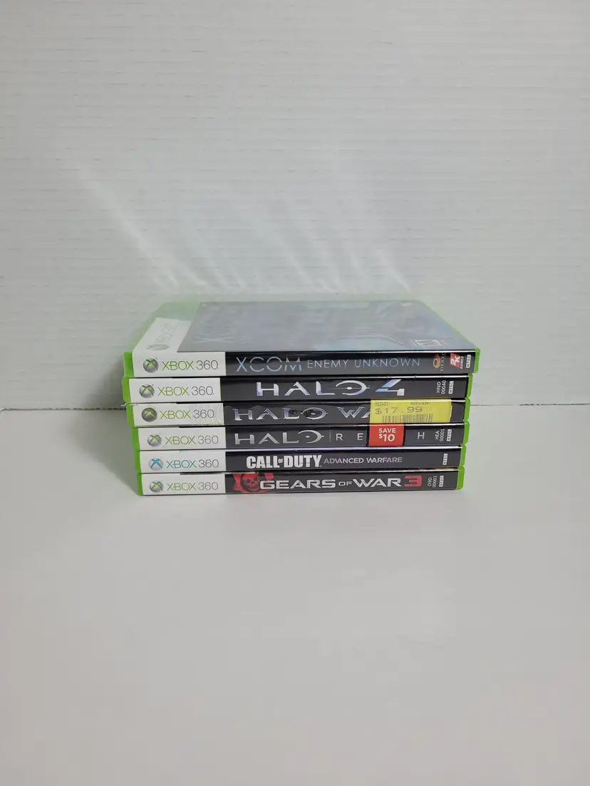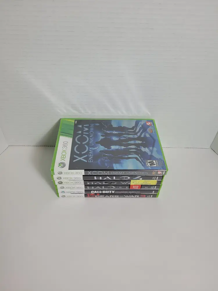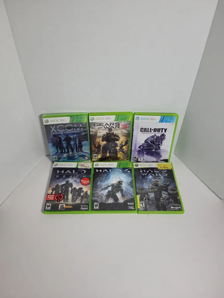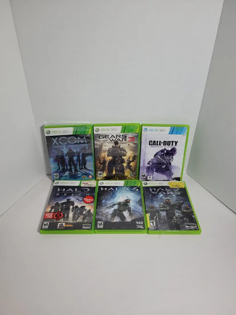 Lot of 6 Xbox 360 Action War Games Lot Includes: XCOM Enemy Unknown New Sealed Gears Of War 3 Pre-owned Call of Duty Advanced Warfare Pre-owned Halo Reach Pre-owned Halo 4 Pre-Owned Halo Wars Pre-Owned All Games Are Complete Very Good Condition - Light wear from normal use See ALL photos for best description Contact me with any questions Ships fast