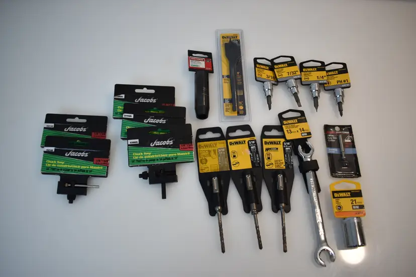 Lot of 7 Brand New Tools. Dewalt, Craftsman, Jacobs Sockets, Bits, Chuck Key