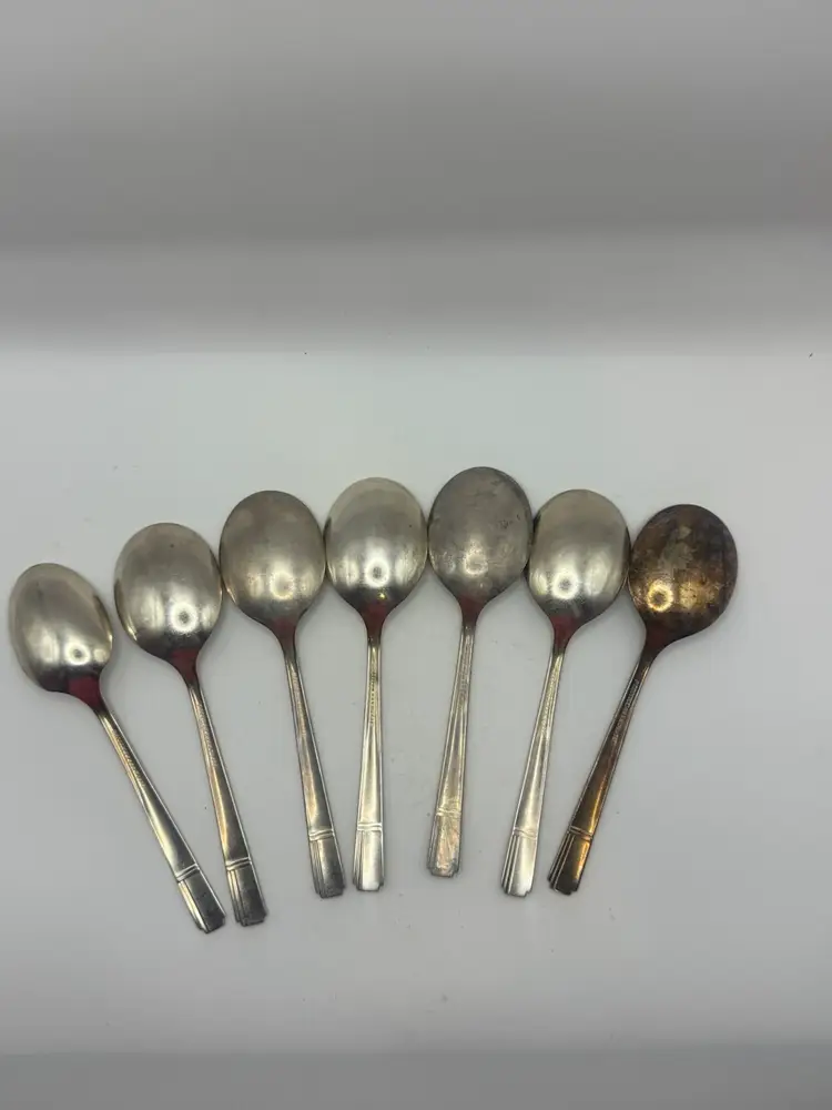 Lot Of 7 Vintage Silver Plate Soup Spoons 7”
