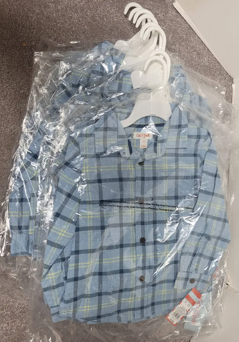 Cat & Jack 4T Toddler Boys Blue Shirt Long Sleeve Heather Plaid Button Down. NWT MSRP $12.99 each