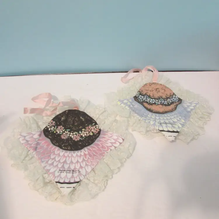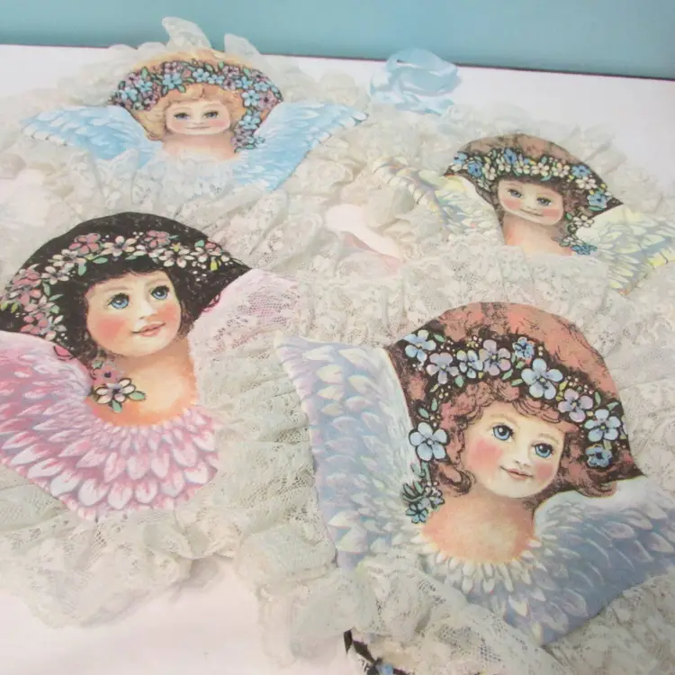 This lovely set need to be filled with poly fil and sewn together. There are 8 ornaments, 2 of each color. Each is about 7" x 6".